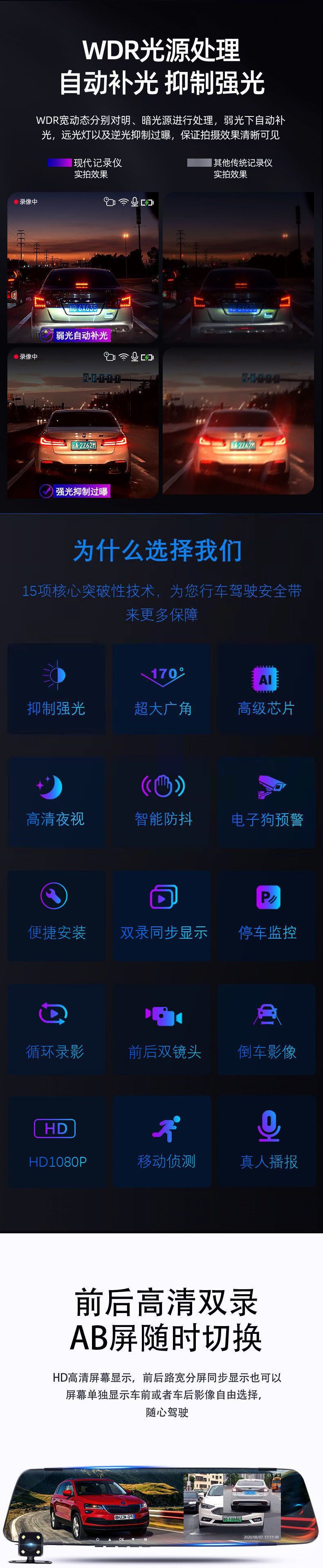 1080P Ultra Hd Navigation Recorder Night Vision 360 Front and Rear Dual Lens Panoramic Reversing Electronic Dog