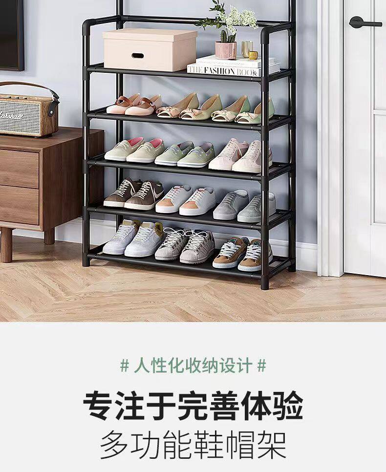 Simple Floor Shoes and Hats Rack Coat Rack Shoes Rack Integrated Rack Household Bedroom Living Room Hanger Hallway Shoes and Hats Rack
