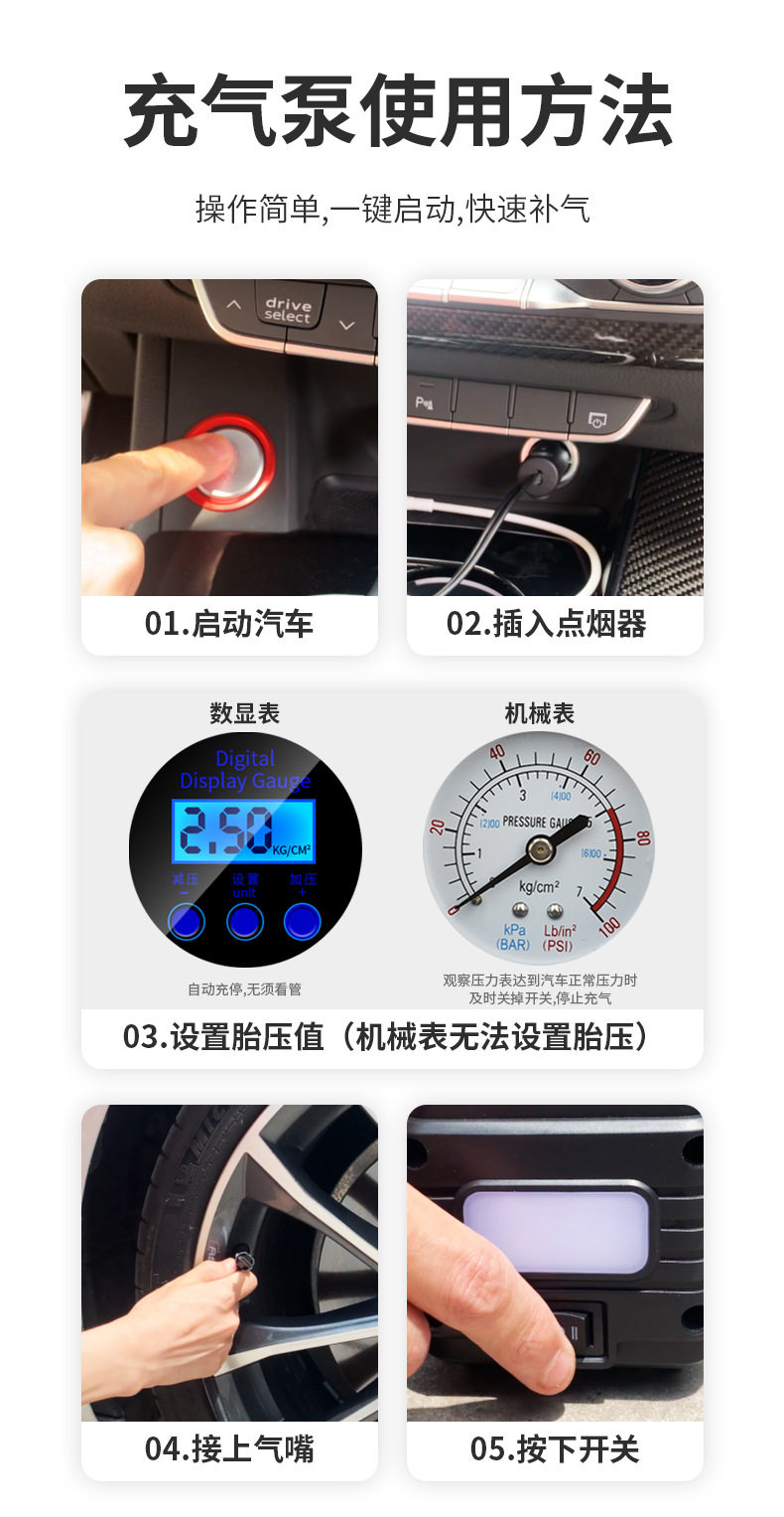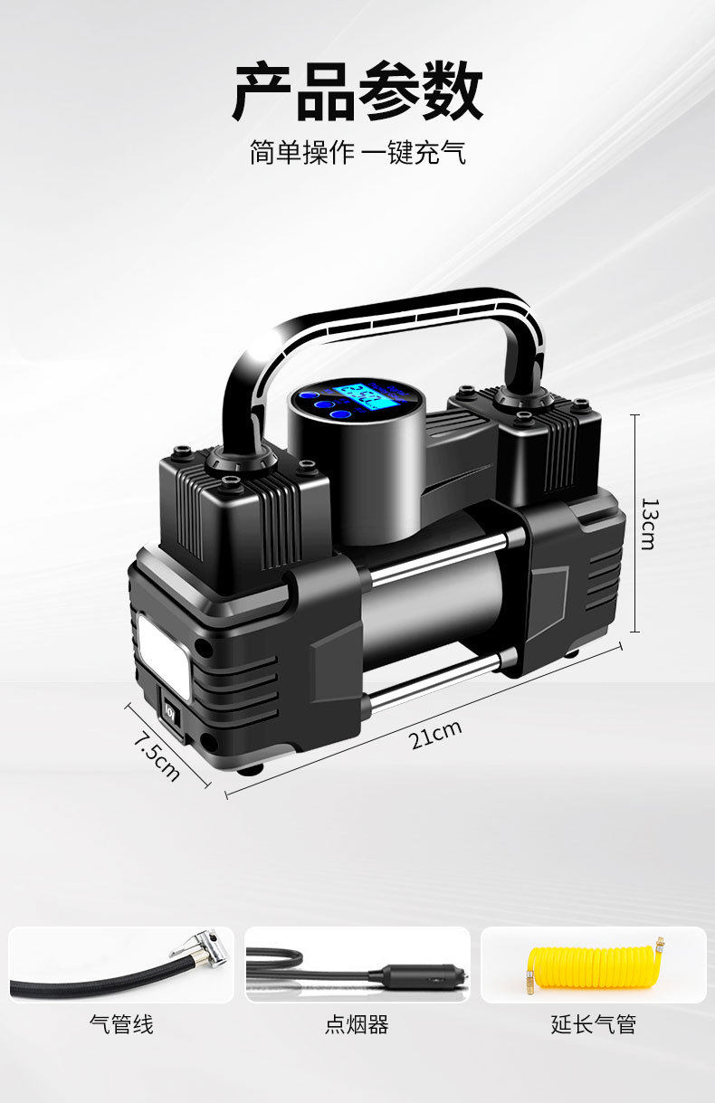 | Specification | Mechanical lightless cloth bag,Powerful double pump 100-cylinder mechanical cloth bag with light,Powerful double pump 100-cylinder machine with light + tool box,Powerful double pump 100 cylinder digital display with light cloth bag,Powerful double pump 100 cylinder digital display tool box with light,Upgraded version - double cylinder 100 cylinder digital display with light + converter,Upgraded version - dual pump 100 cylinder digital display with light + tool box + converter,Recommended upgraded model for trucks - storage with lights,Recommended upgraded model for trucks - storage digital display with lights,Box storage all-in-one |
