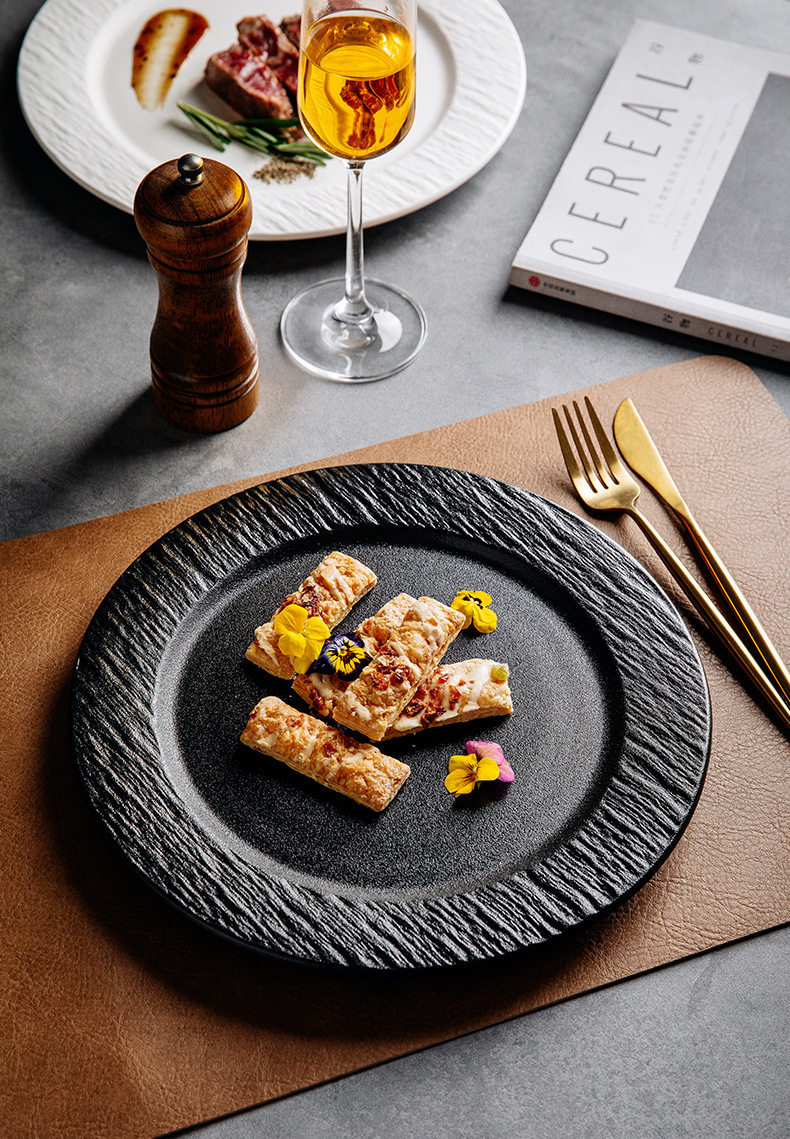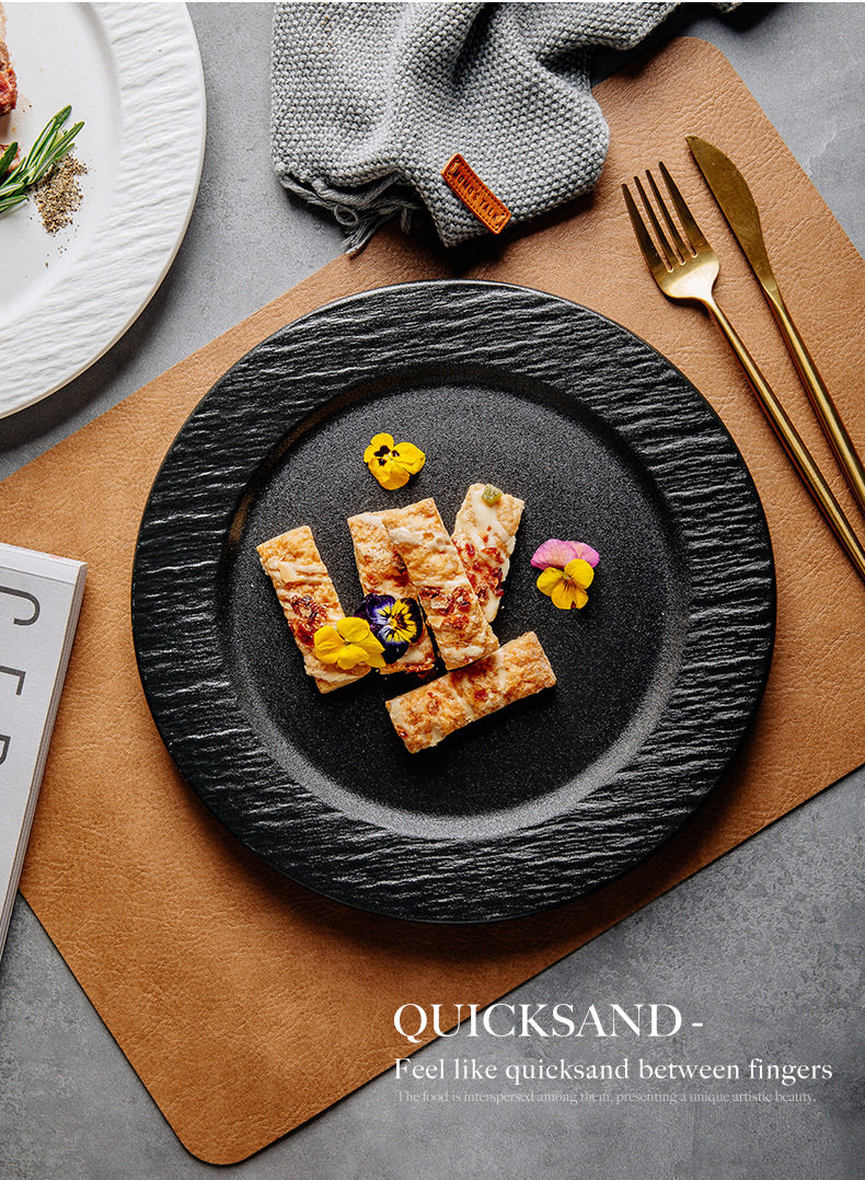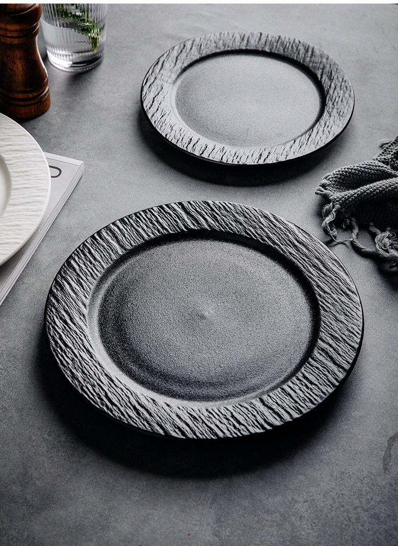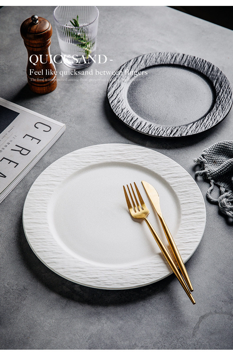 Stone Pattern Ceramic Disc Steak Plate Western Food Plate Flat Plate Pizza Plate Household Plate Western Restaurant High Value Plate