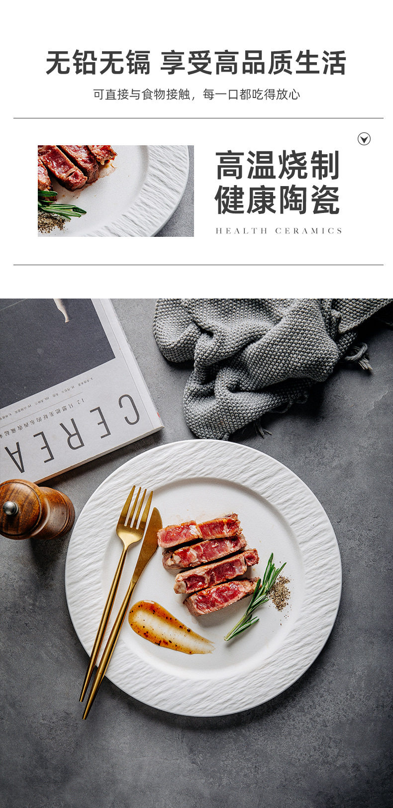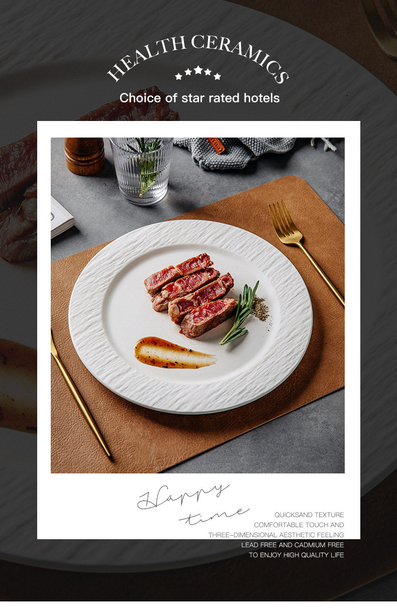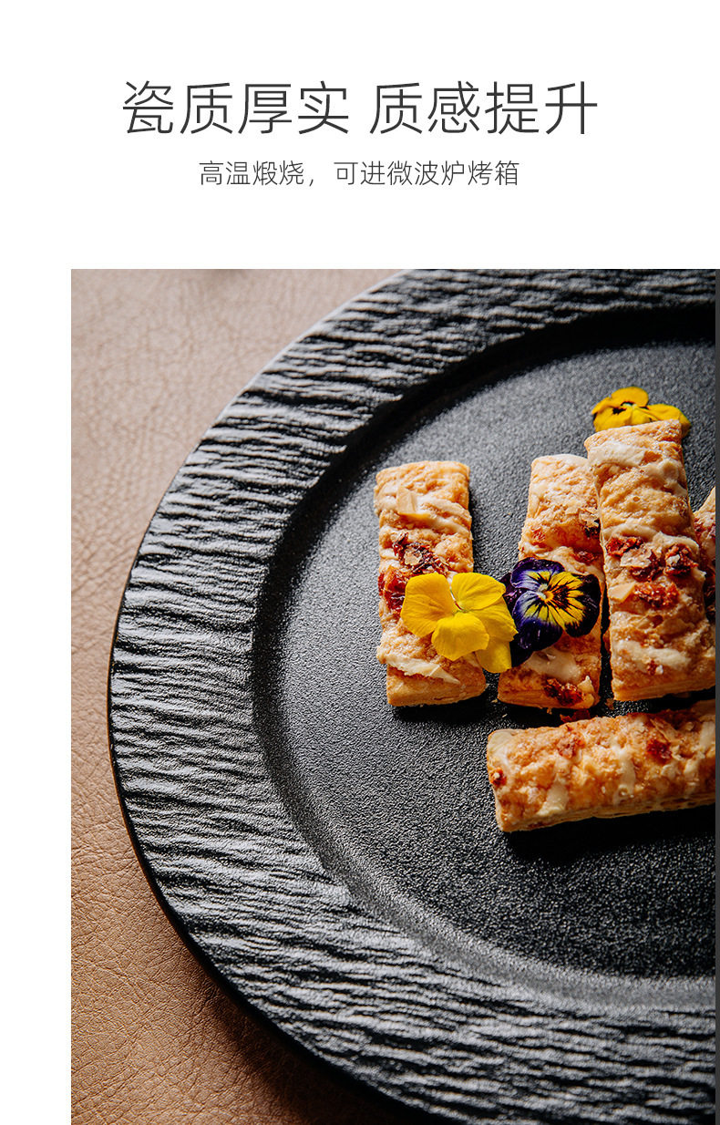 Stone Pattern Ceramic Disc Steak Plate Western Food Plate Flat Plate Pizza Plate Household Plate Western Restaurant High Value Plate