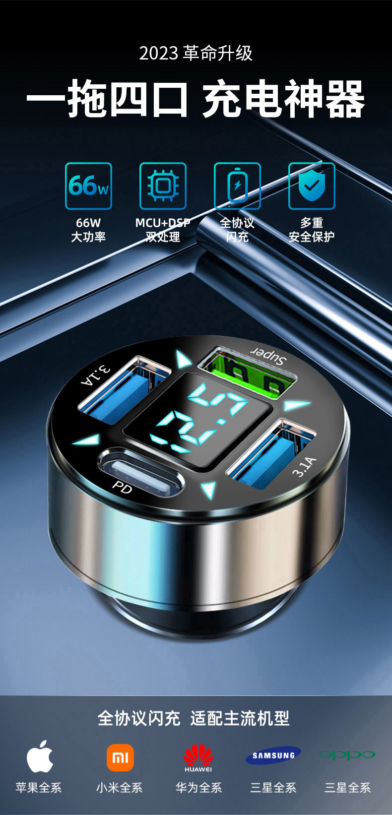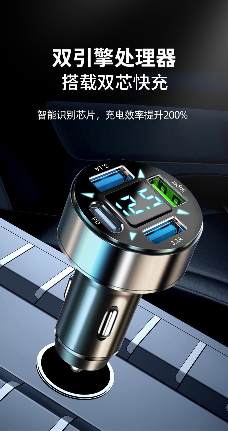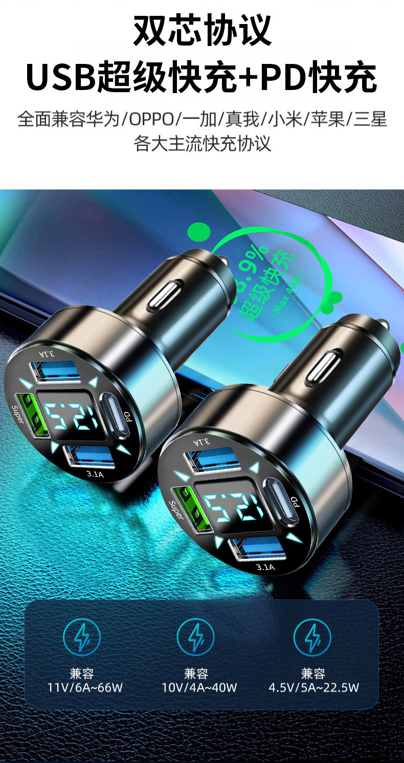 Popular Car Charger, Super Fast Charging Head, Multi-Functional Mobile Phone Car Charger, Cigarette Lighter, Suitable for Apple and Huawei, Multi-Port