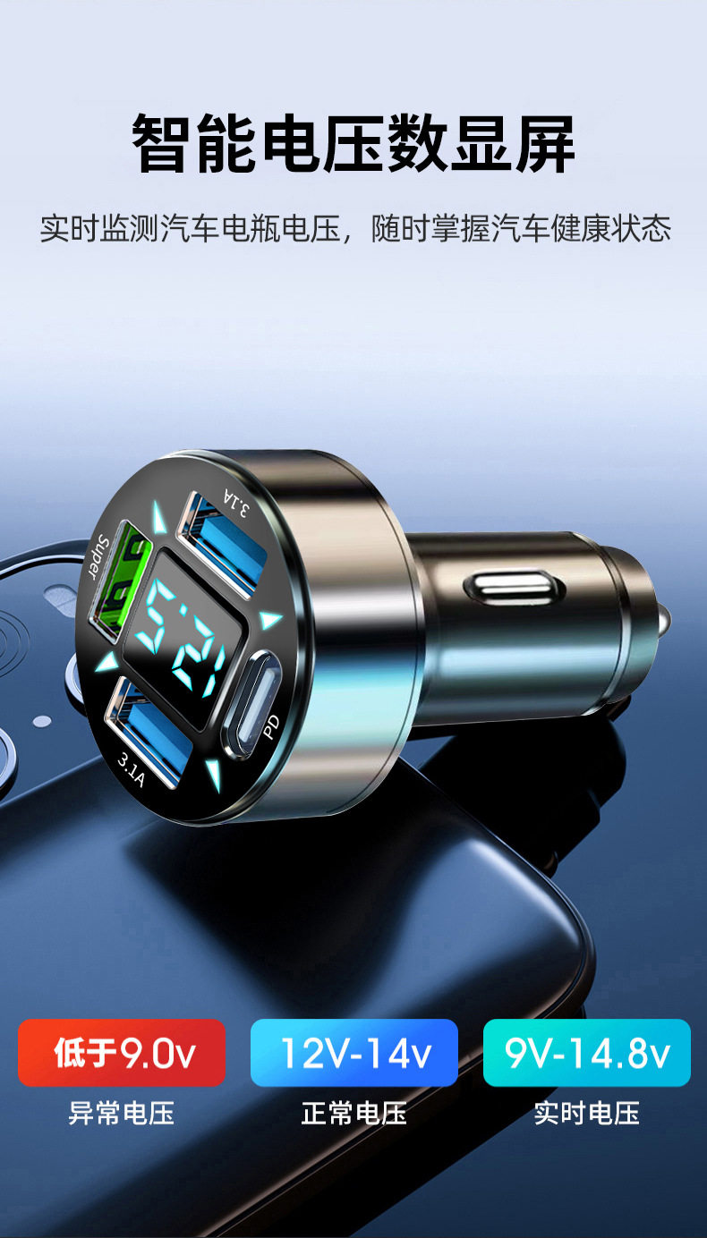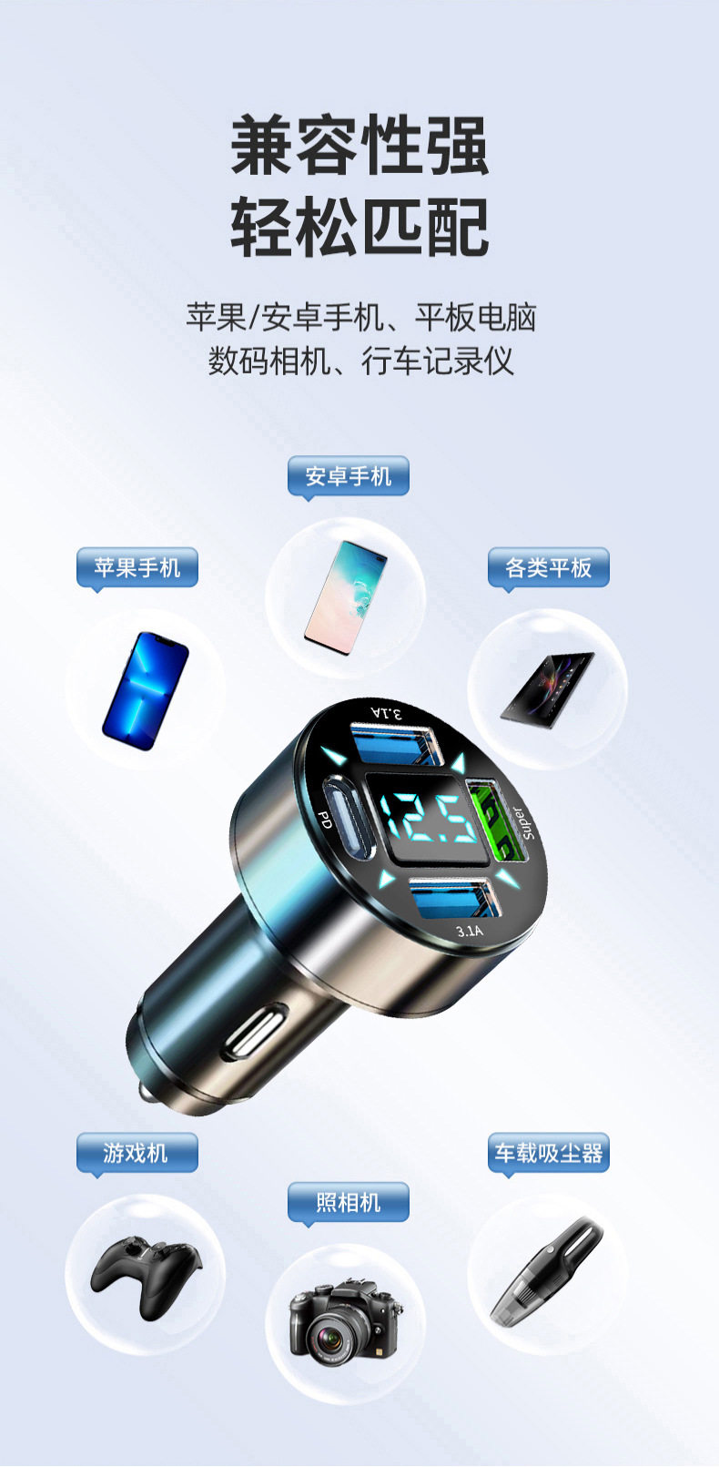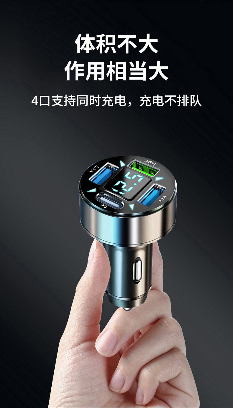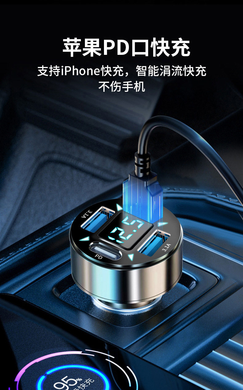 Popular Car Charger, Super Fast Charging Head, Multi-Functional Mobile Phone Car Charger, Cigarette Lighter, Suitable for Apple and Huawei, Multi-Port