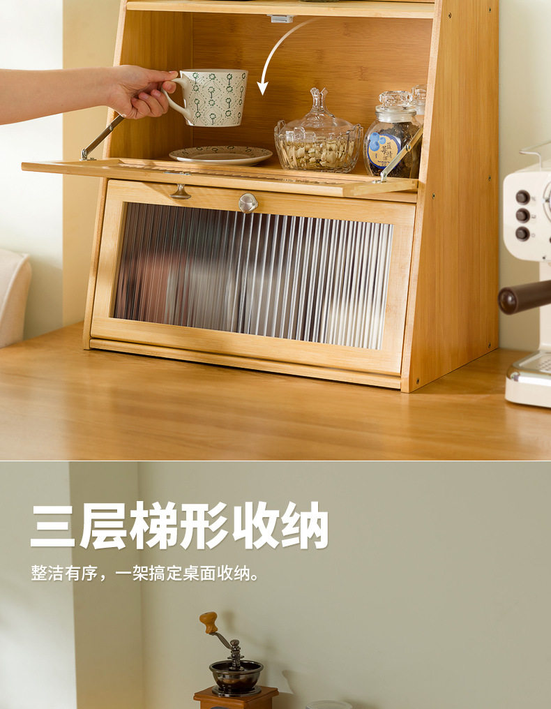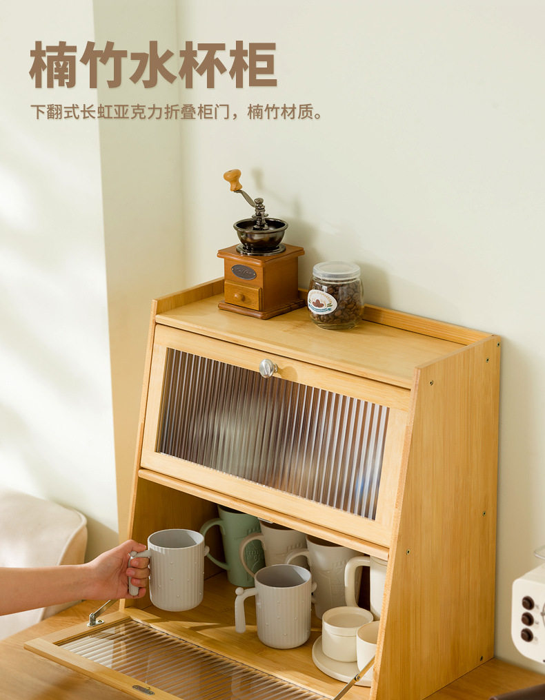 Desktop Storage Box Cup Storage Cabinet Tea Set Display Cabinet Kitchen Water Cup Storage Rack Bamboo Tableware Storage Cabinet
