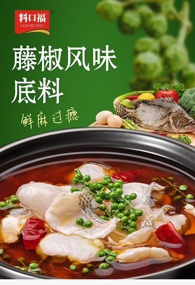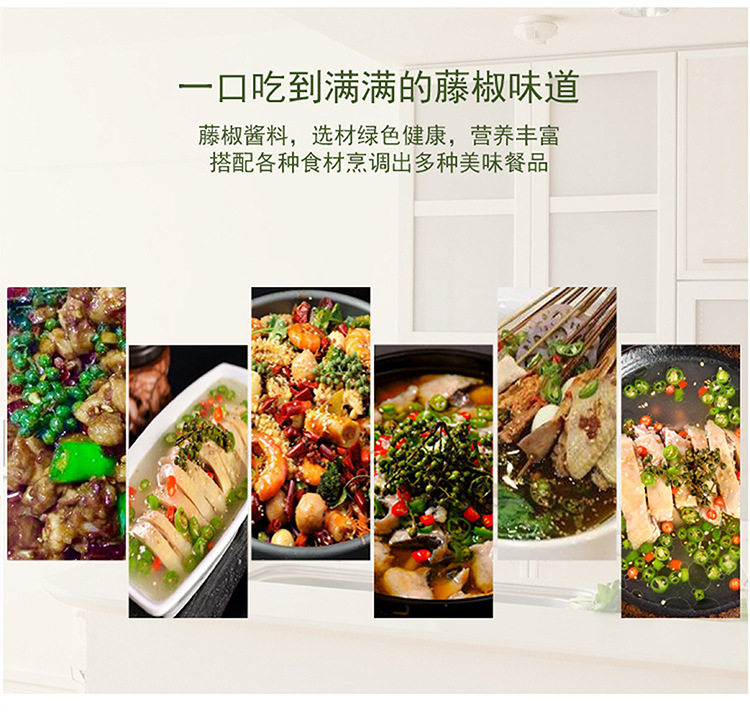 | Raw materials and ingredients | Rapeseed oil, fresh green pepper, drinking water, garlic, chicken powder, monosodium glutamate, white sugar, edible salt, spinach rattan pepper seasoning oil, green onion, ginger, etc; |