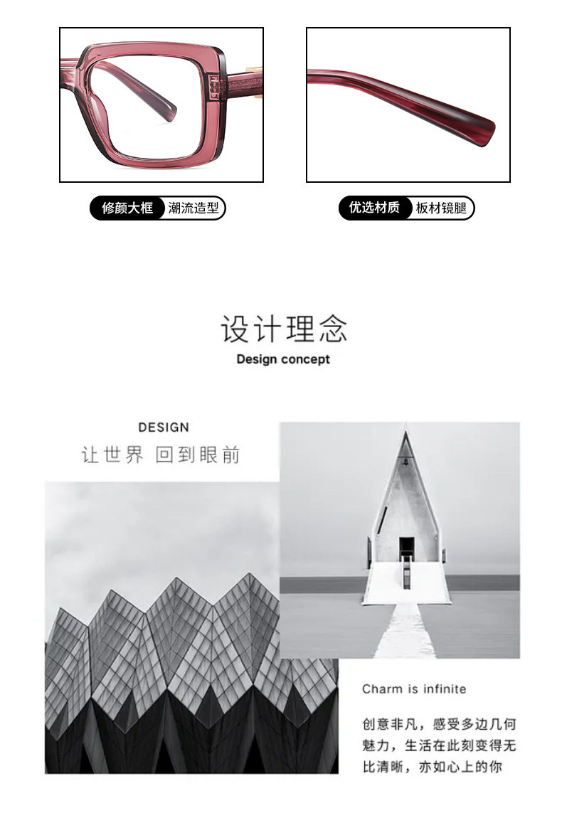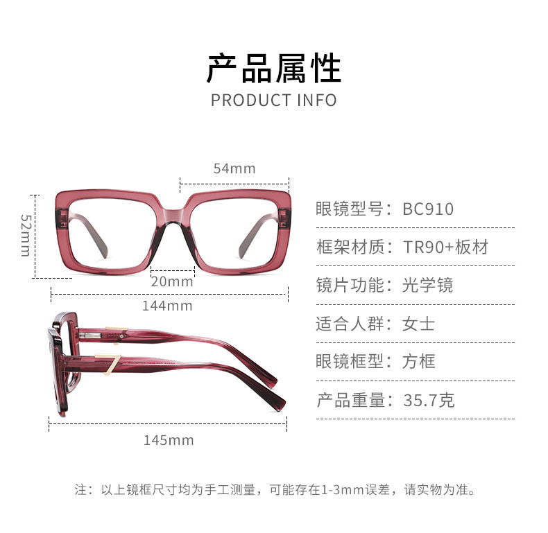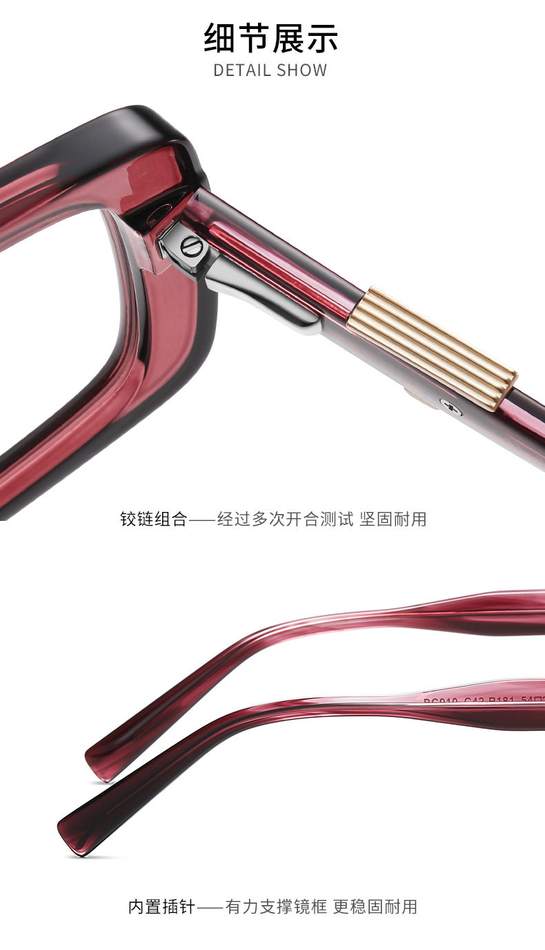 Bc910 New Fashion Glasses Frame for Women, European and American Trendy Brand Flat Mirrors, High-End Plate Legs, Can Be Equipped with Glasses