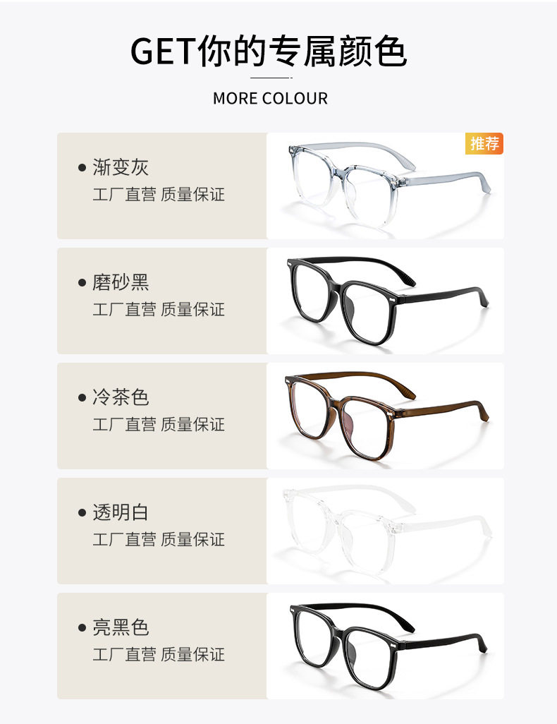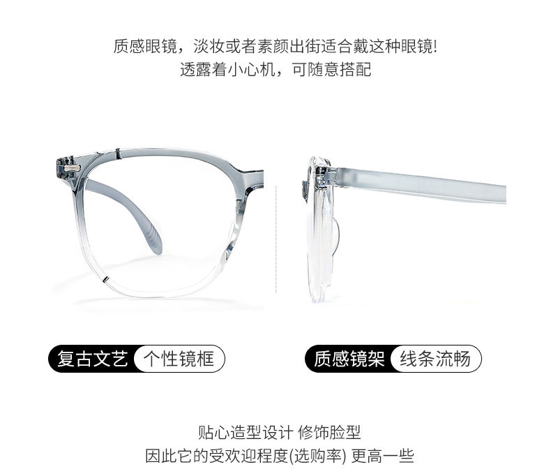 Gradient Color Anti-Blue Light Large Frame Glasses Frame Tr90 Frame Women's 81019 Danyang Glasses Myopia Plain Mirror for Women