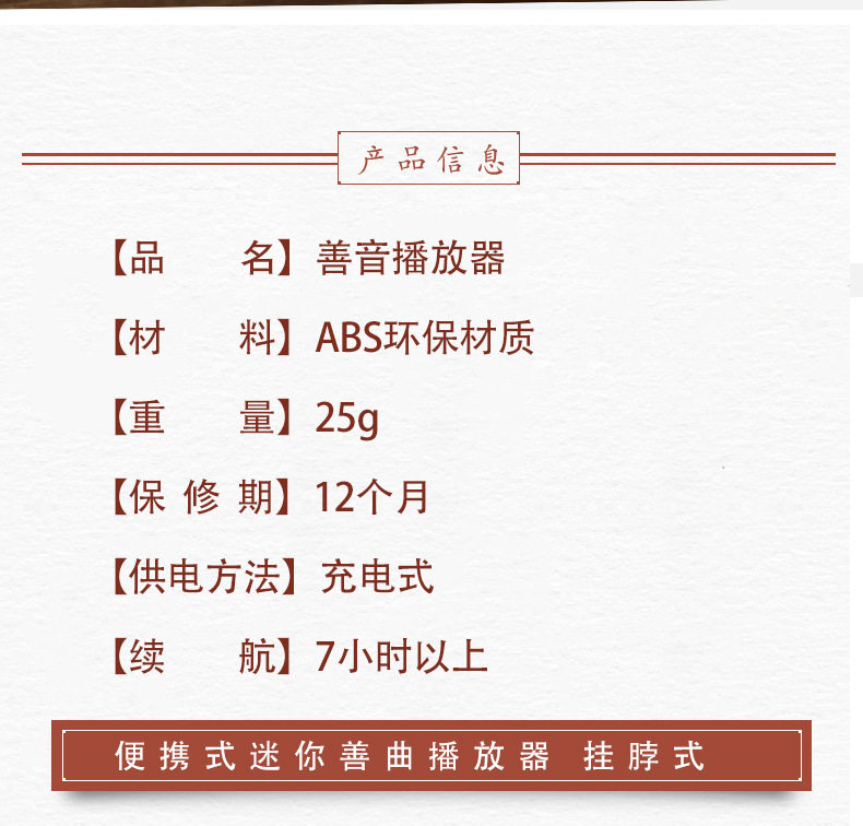 | Packing list | Player + charging cable + lanyard + manual + singer + packaging box |