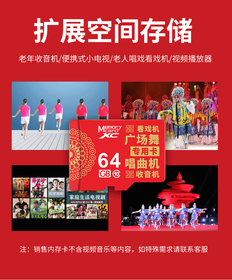 Storage man audio memory card square dance Speaker singing machine radio speaker MP4 storage card 32g64GTF card