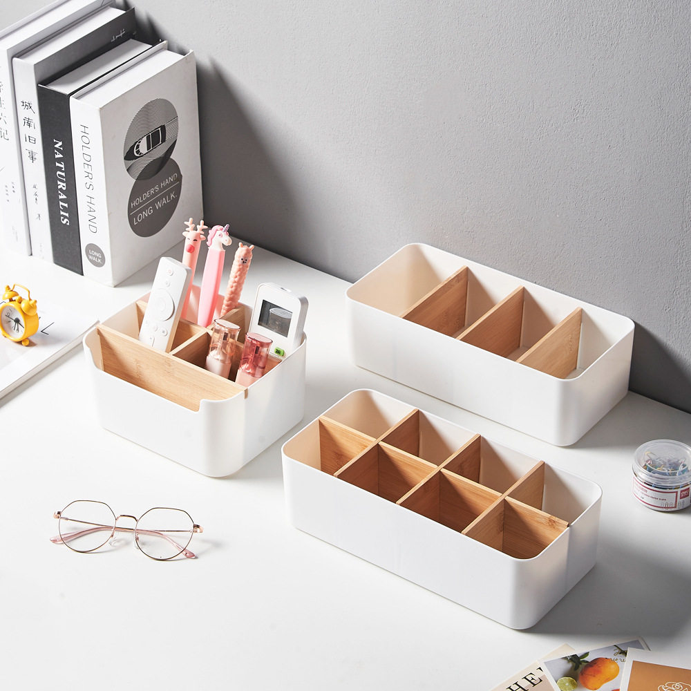Creative compartment storage box removable bamboo partition desktop stationery office sundries finishing cosmetics storage