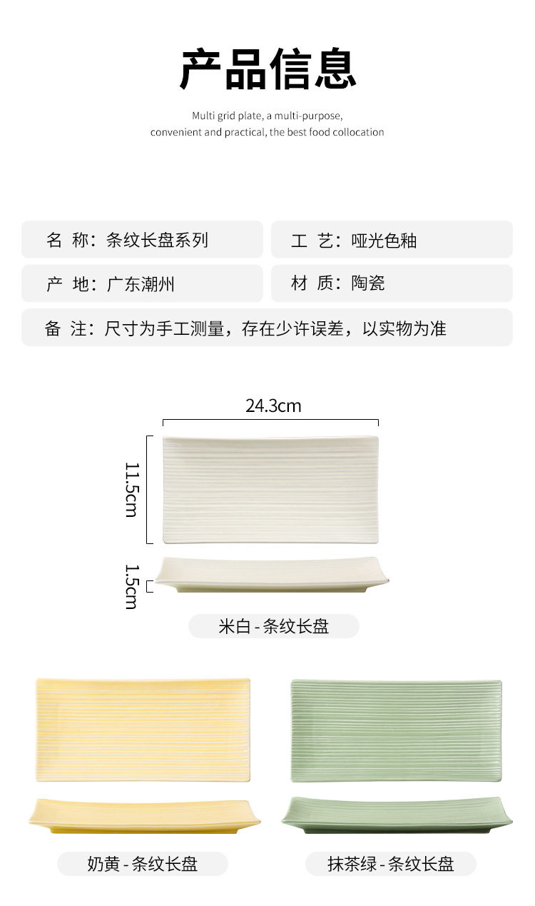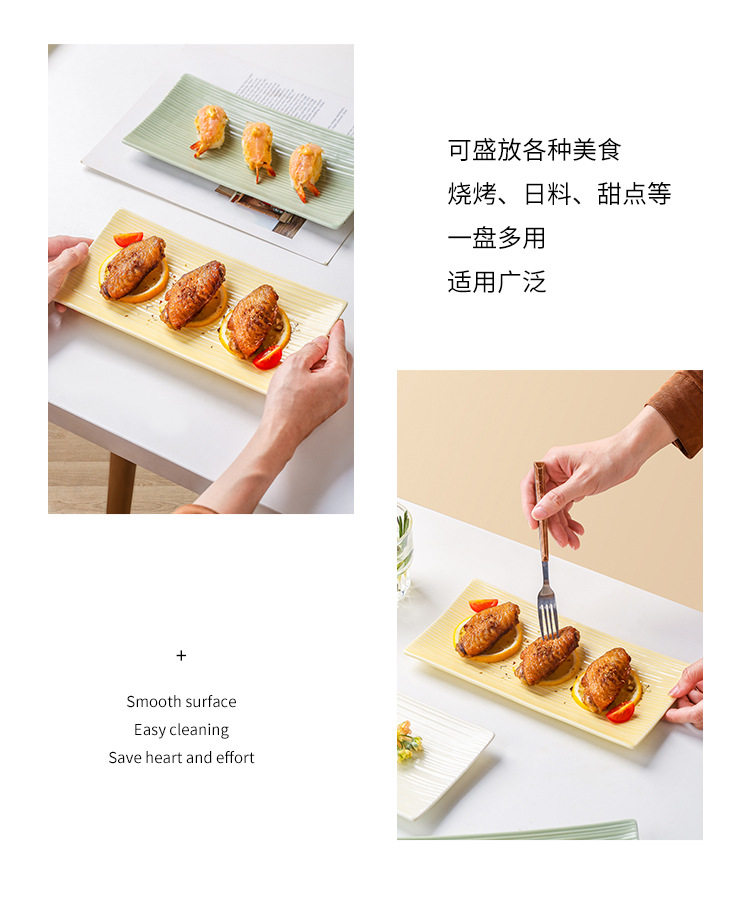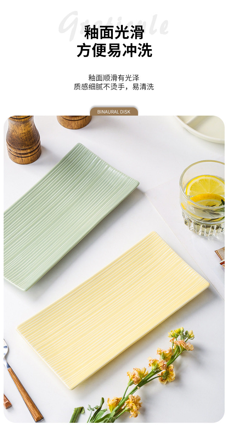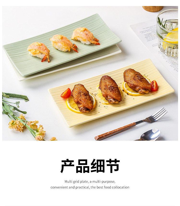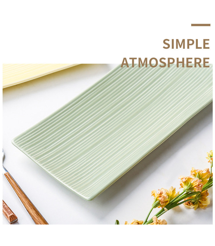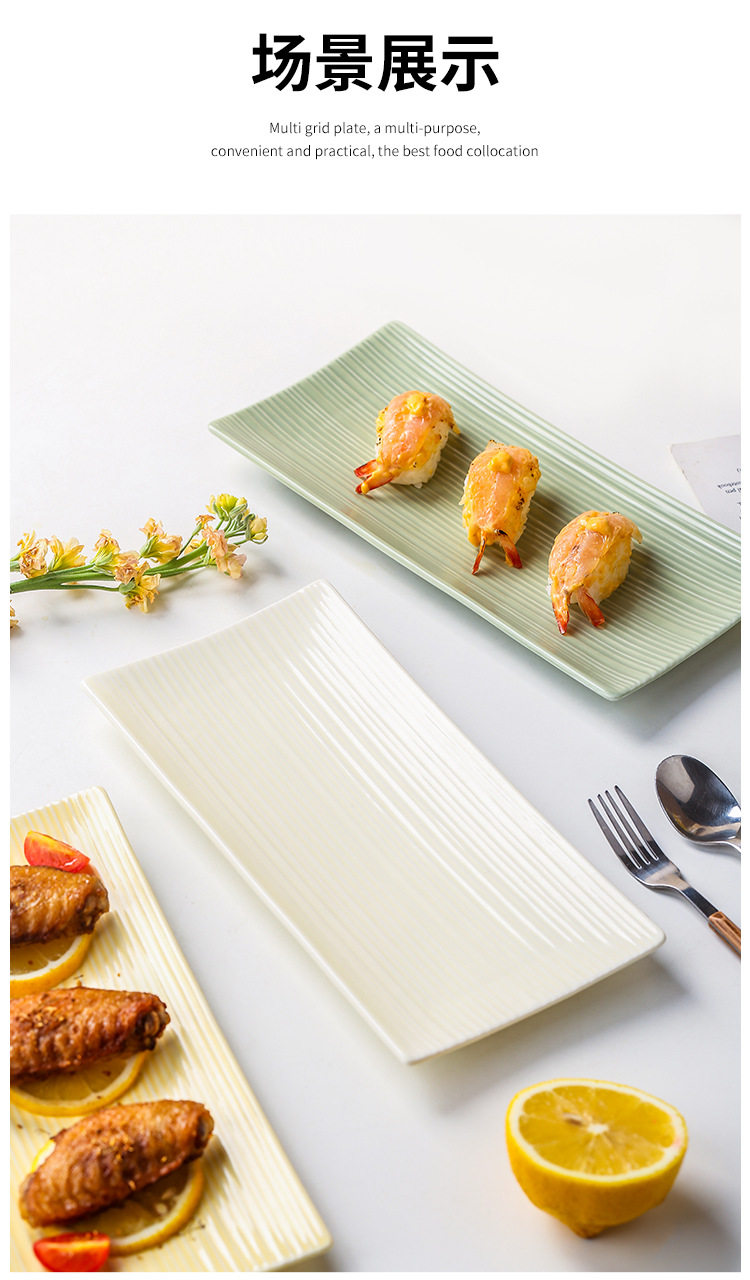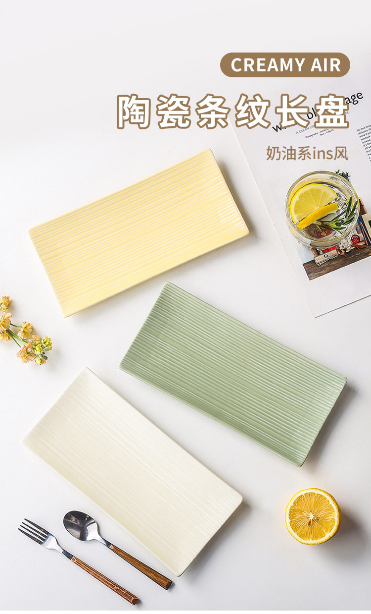 | Color | Long square striped plate-rice White,Long square striped plate-beige,Striped rectangular plate-Matcha Green |