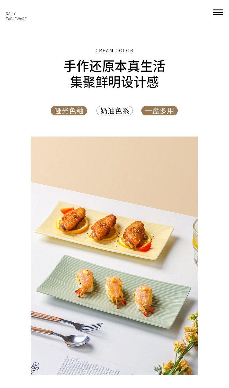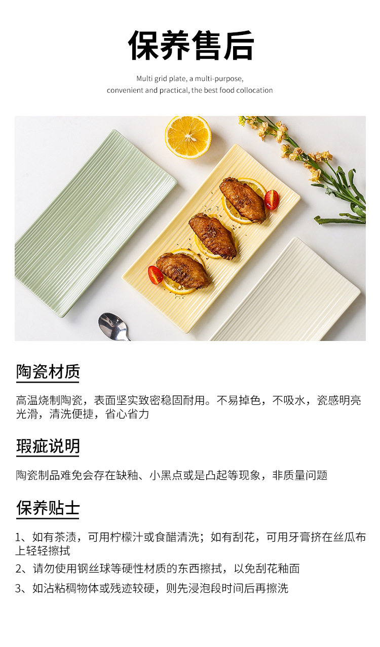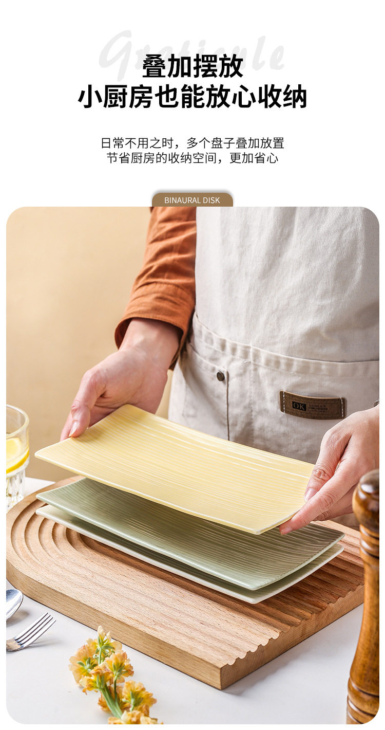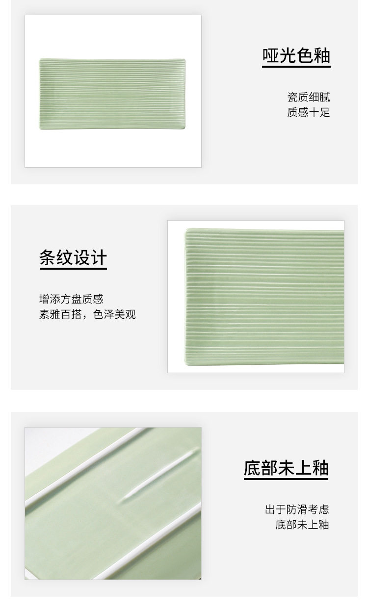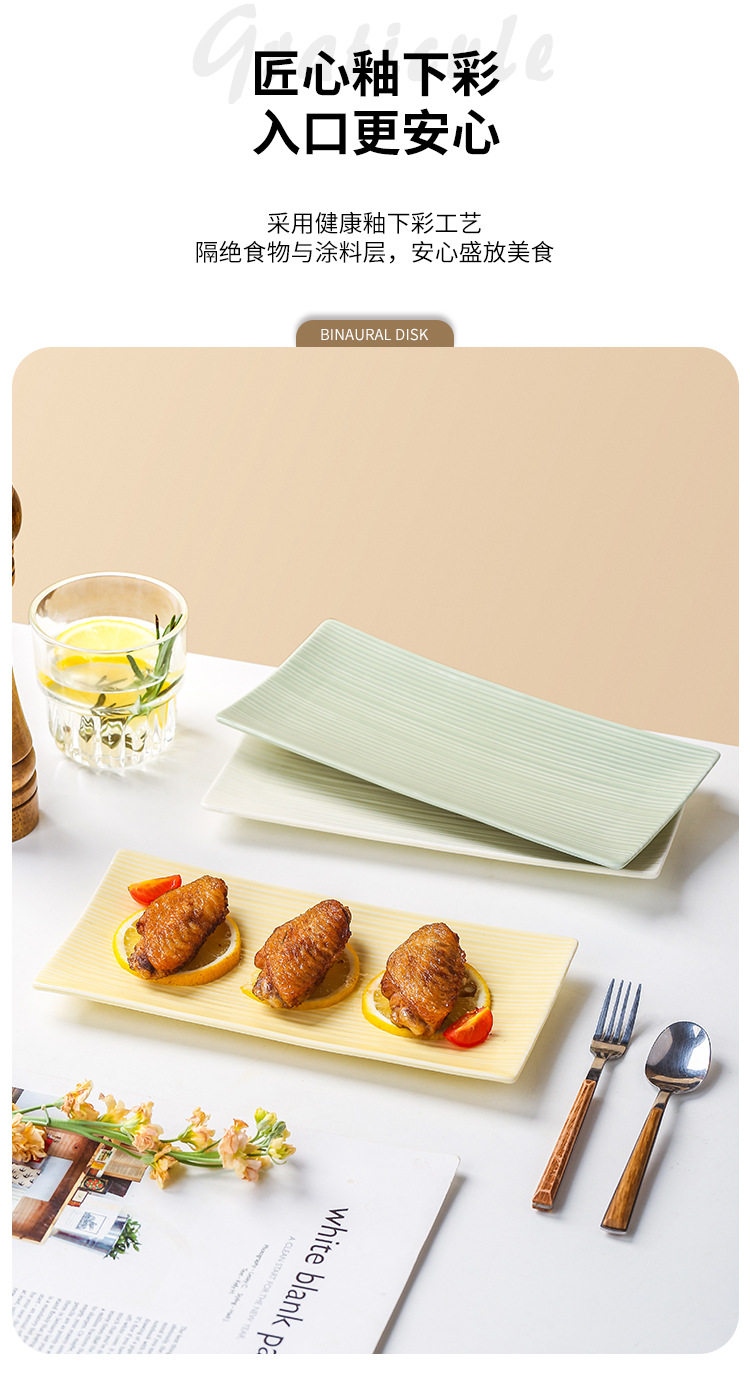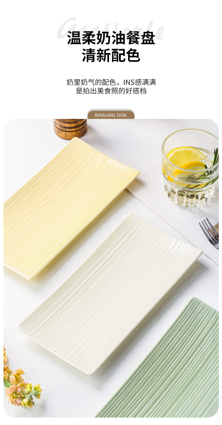 | Color | Long square striped plate-rice White,Long square striped plate-beige,Striped rectangular plate-Matcha Green |