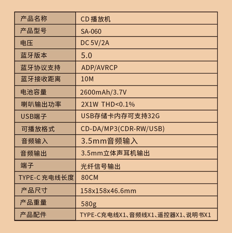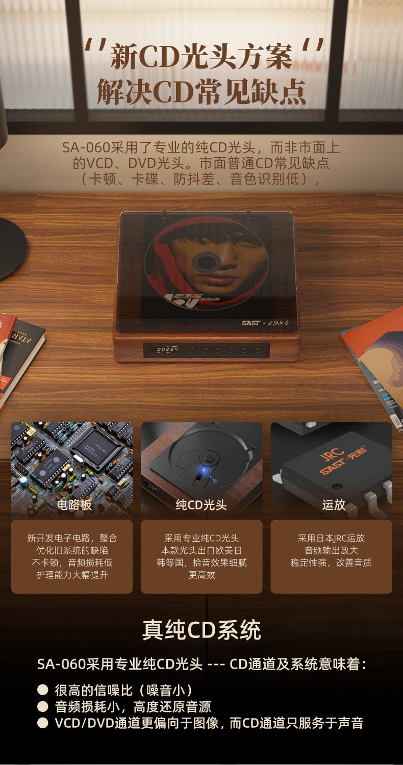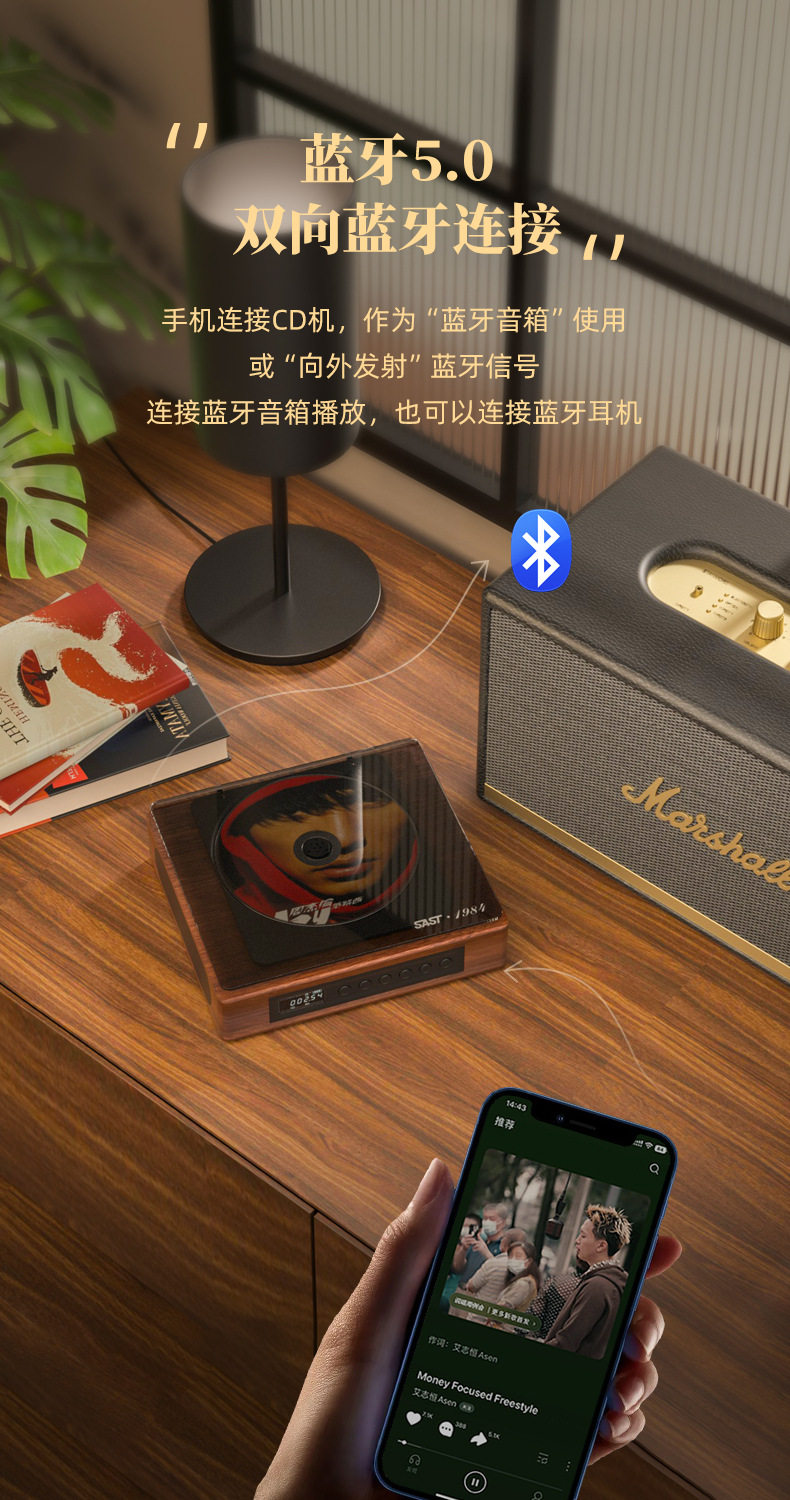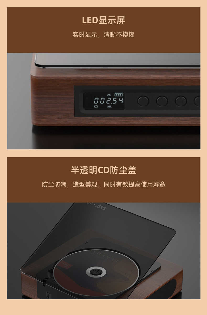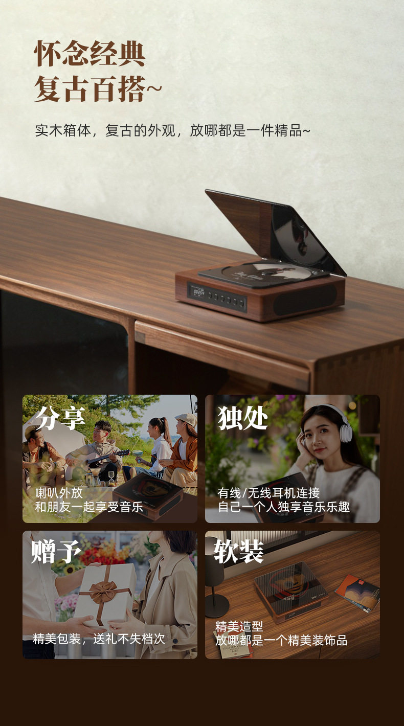 Xianke cd player Retro Bluetooth audio all-in-one small vinyl cd disc player rechargeable portable Walkman