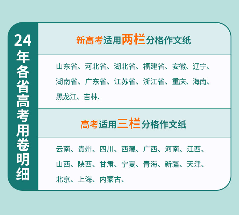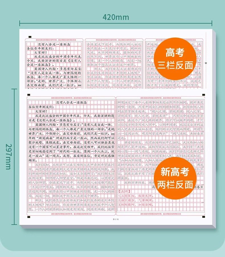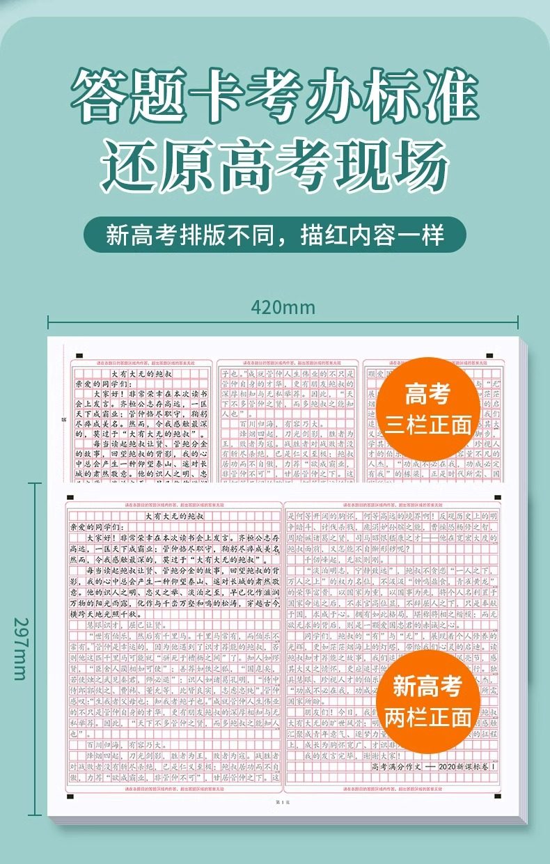 | Specifications | [10 sheets/20 articles] full marks in column 3 of the college entrance examination composition answer card,[Strengthen Exercise ☆ 2 *(10 sheets/20 articles)] Full Score Composition Answer Card in Column 3 of College Entrance Examination,[10 sheets/20 articles] the new college entrance examination 2 column full score composition answer card,[Strengthen Exercise ☆ 2 *(10 sheets/20 articles)] Full Score Composition Answer Card in Column 2 of the New College Entrance Examination,[College Entrance Examination Combination] Full Score Composition Answer Card 10 Composition Paper 20,[New College Entrance Examination Combination] Full Score Composition Answer Card 10 Composition Paper 20,【★Value Suit★College Entrance Examination] Full Score Composition Answer Sheet 10 Ancient Poems 1 Classical Chinese 1,【★Value Suit★New College Entrance Examination] Full Score Composition Answer Sheet 10 Ancient Poems 1 Classical Chinese 1,Senior high school entrance examination [10 sheets/20 articles] 3 columns full score composition answer card,Senior High School Entrance Examination [Strengthening Exercise ☆ 2 *(10 sheets/20 articles)] Full Score Composition Answer Card in Column 3 |