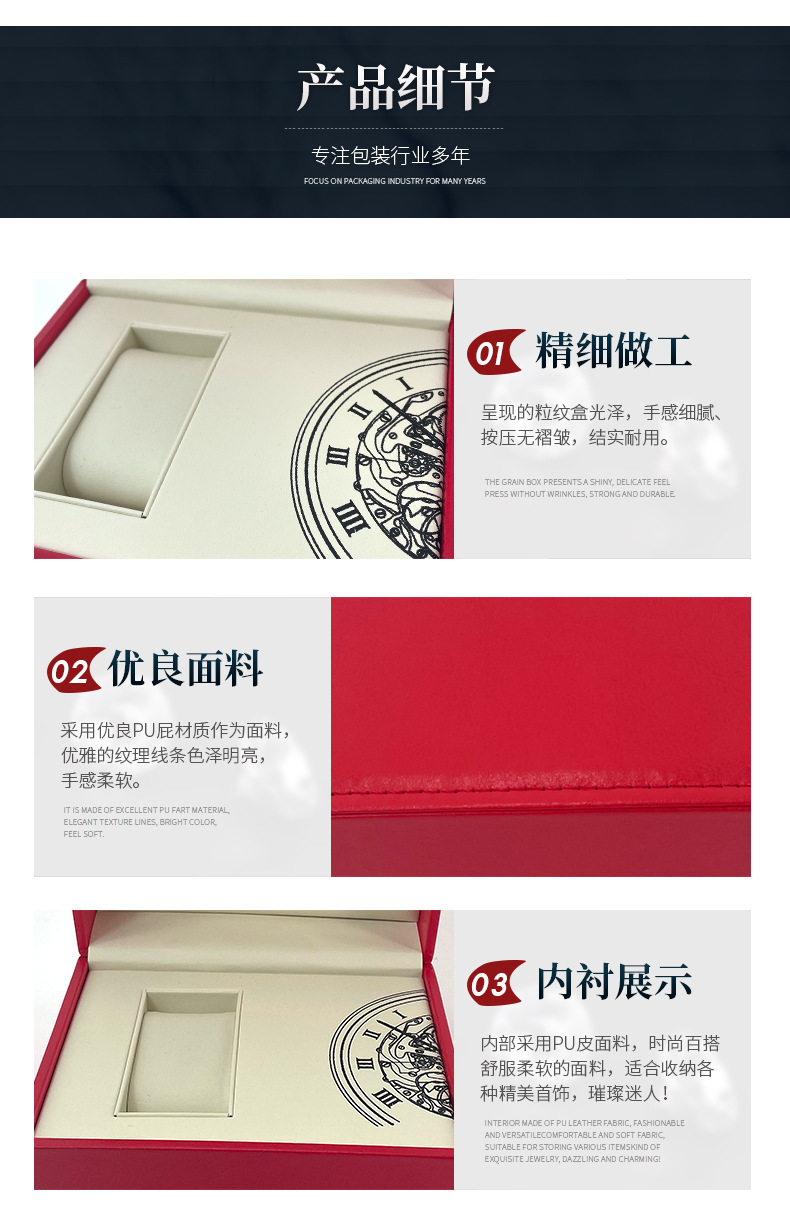 | Specifications and models | Pu watch packaging box*175mm*80mm140mm |