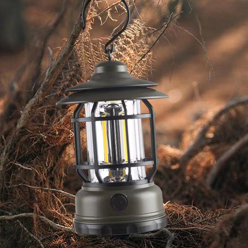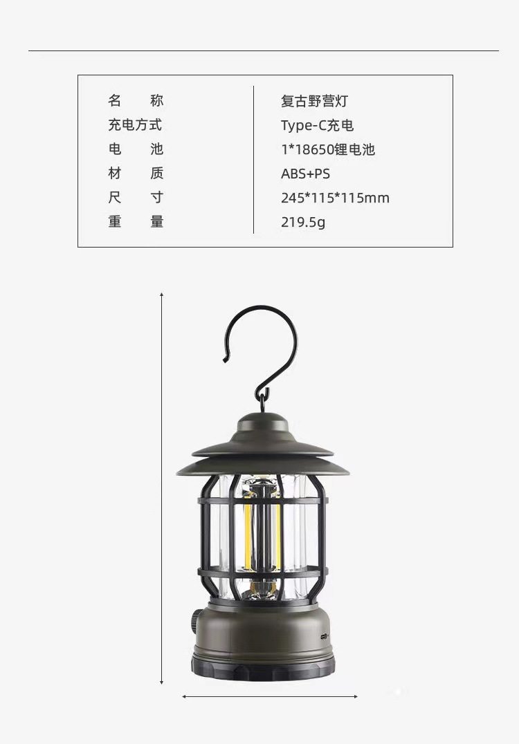 Explosive multifunctional retro camping USB rechargeable led tent outdoor lantern portable lamp emergency lighting camping lamp