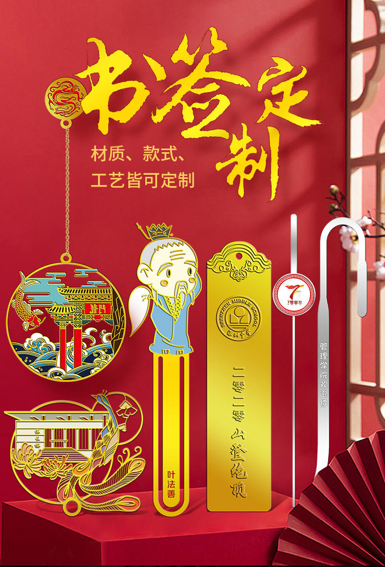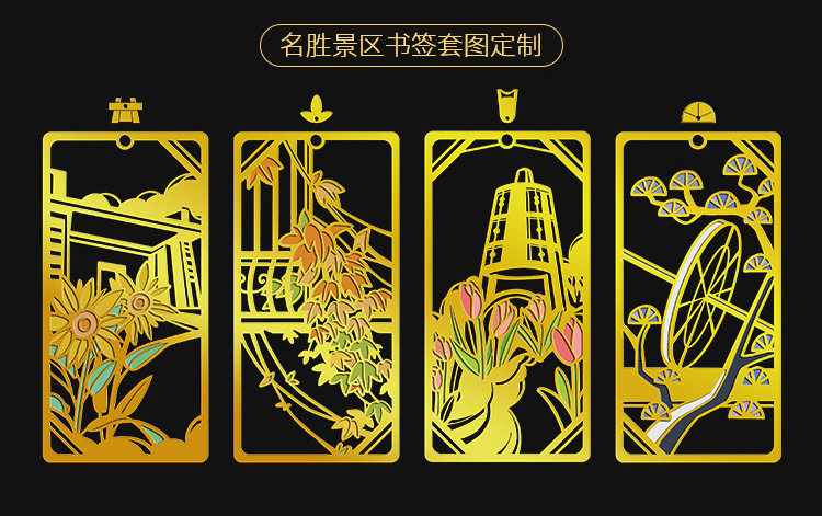 Customized Logo, Small Batch Brass Cut Out Classical Chinese Style Cultural and Creative Souvenir Metal Bookmark Customization