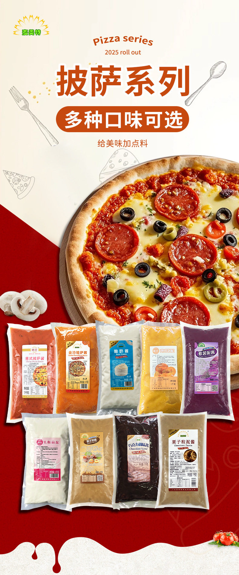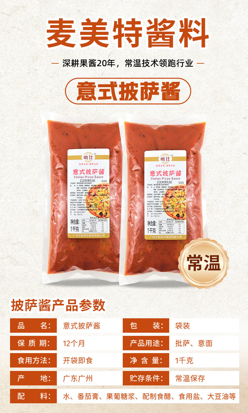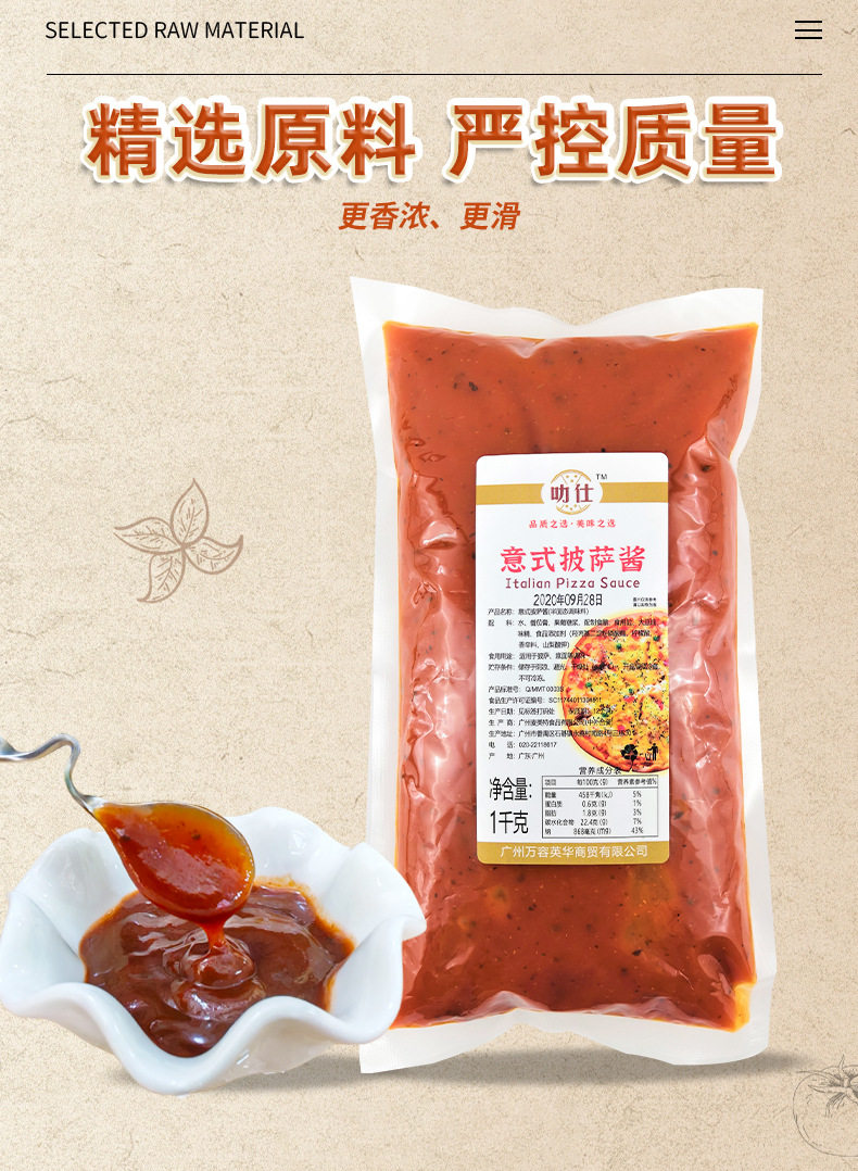 Italian Pizza Sauce 1Kg/Bag Commercial Pasta Pizza Sauce Western-Style Baking Ingredients Noodle Factory Bagged Seasoning Sauce