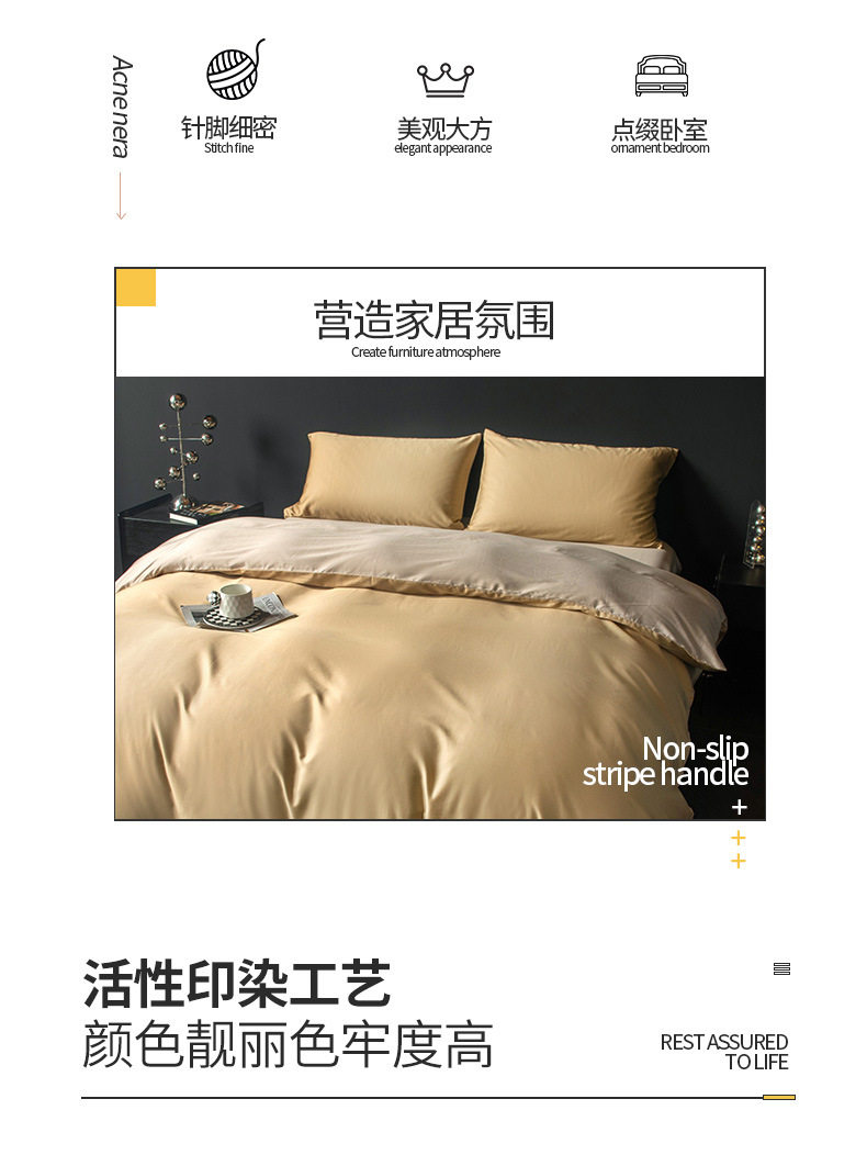 | Pattern | Four-piece color matching-champagne gold + khaki,Four-piece set with color matching - bean paste + high-grade gray,Four-piece set of color matching-love horse Orange + Rice Gray,Four-piece set with color matching - yalan + high-end gray,Four-piece color matching-bright yellow + Roman Gray,Four-piece set with color matching - qingcheng gray + bean paste powder,Four-piece color matching-royal blue + Yalan,Four-piece set with color matching - oriole green + premium gray,Four-piece set with color matching - high-end gray + khaki,Four-piece set with color matching - charming purple + beige gray,Four-piece set of color matching-Moonlight Blue + Yalan,Four-piece set with color matching - qingcheng gray + champagne gold,Four-piece solid color-Tianhu Blue,Four-piece solid Color-Advanced Gray,Four-piece solid color-rice Gray,Four-piece solid color-Matcha Green,Four-piece color matching-wine red + bean powder |