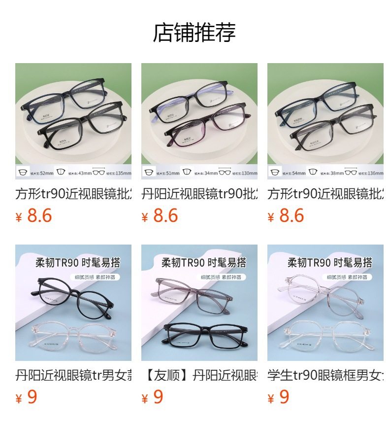 New Tr Myopia Glasses Frame Danyang Factory Wholesale Men's and Women's Full-Frame Glasses Tr90 Glasses Frame Ultra-Light