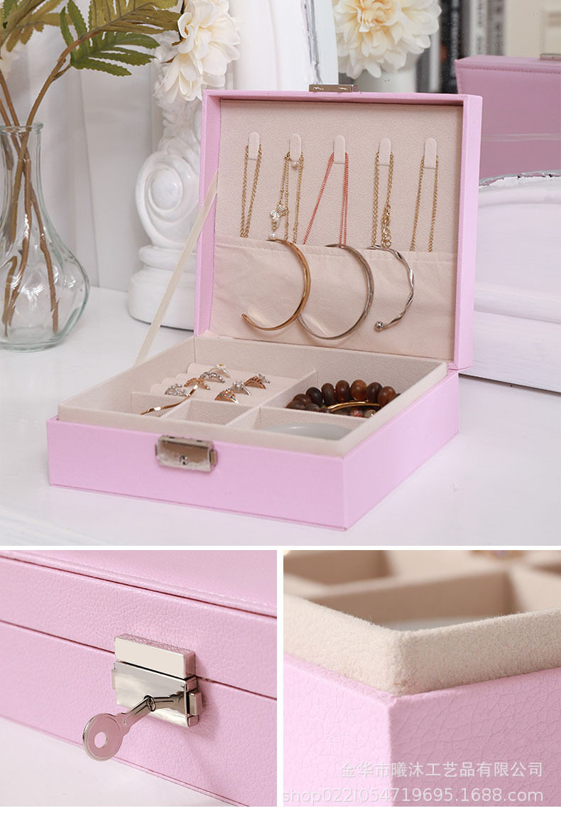 Large-Capacity Single-Layer Jewelry Storage Box with Lock Internet Celebrity Amazon Best-Selling Earrings Ring Necklace Jewelry Box