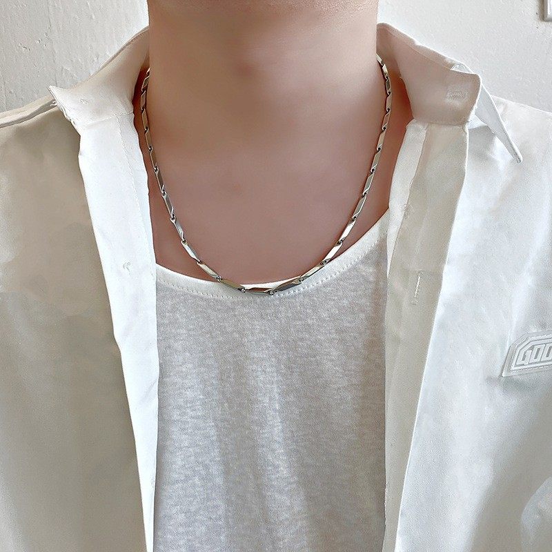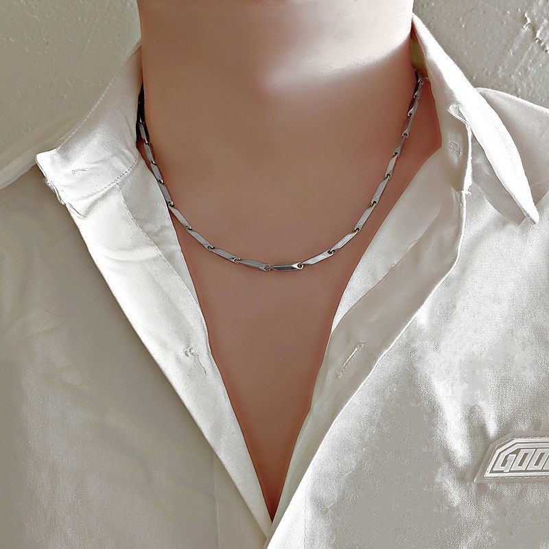 Niche design titanium steel melon seed chain necklace men's all-match light luxury Ins hip hop street style bamboo leaf clavicle chain