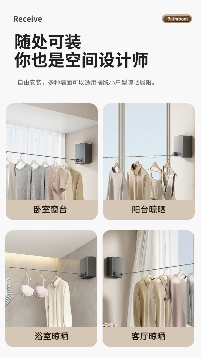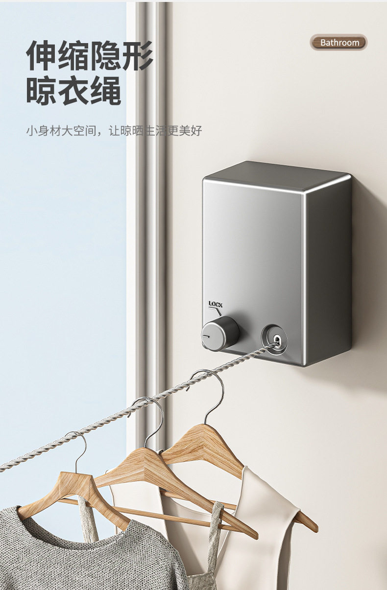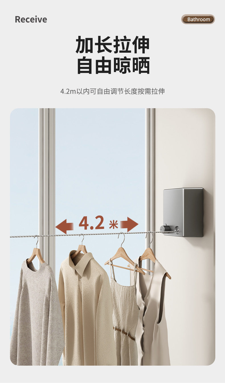 Kele Stainless Steel Wire Clothesline Dormitory Punch-free Drying Rack Hotel Home Invisible Retractable Clothesline