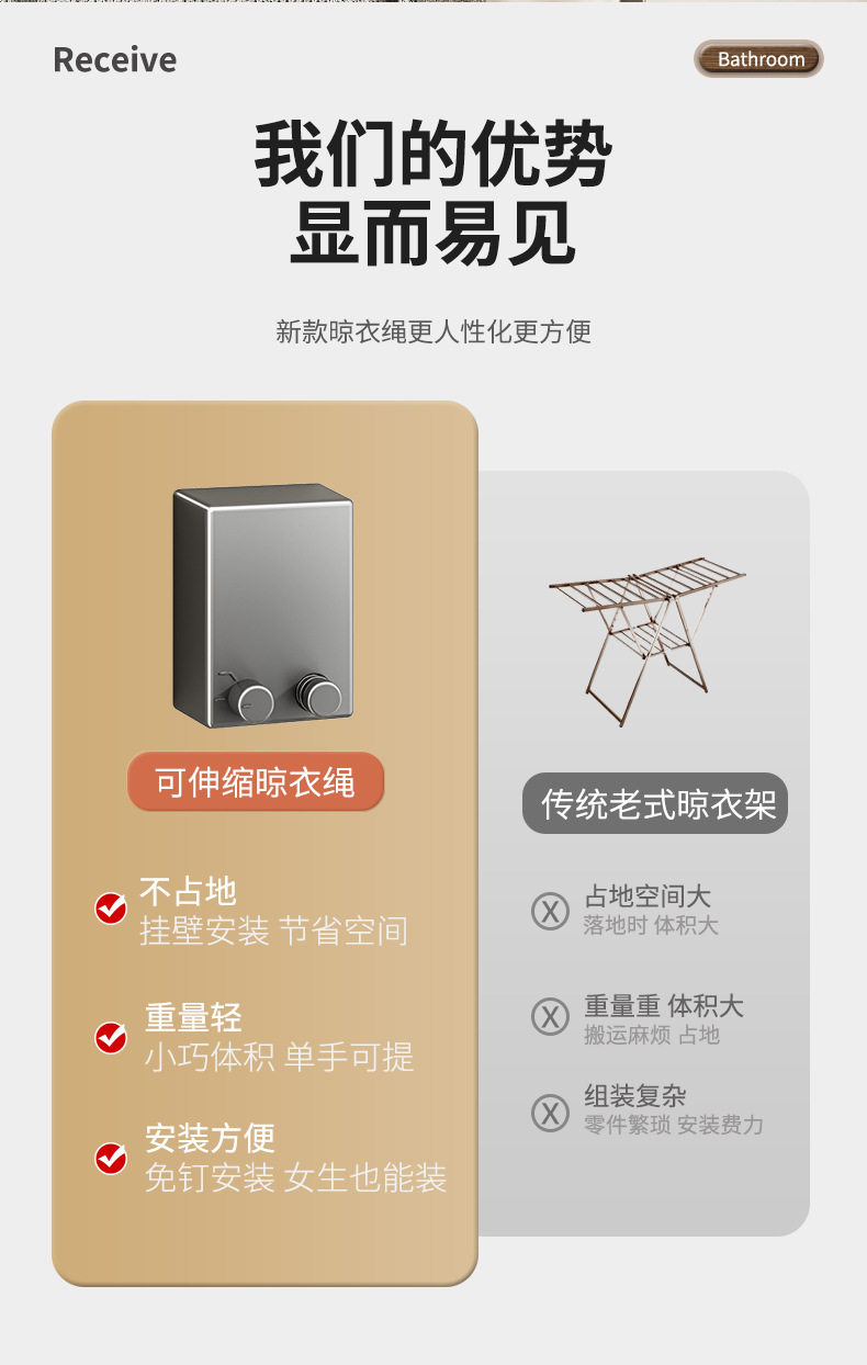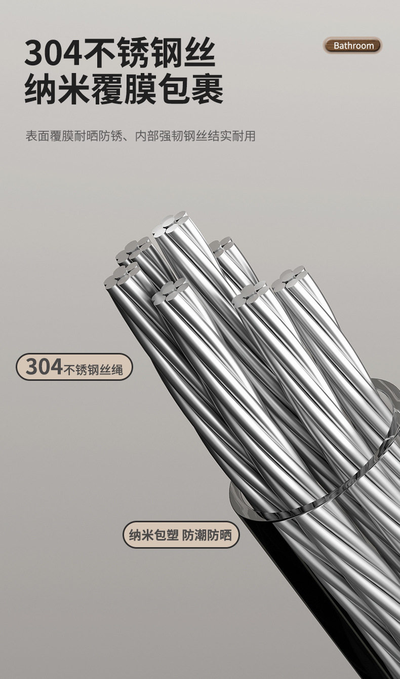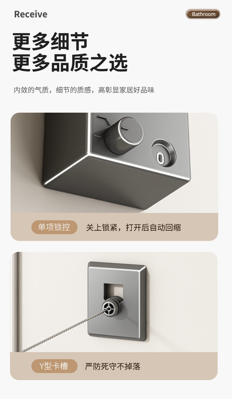 Kele Stainless Steel Wire Clothesline Dormitory Punch-free Drying Rack Hotel Home Invisible Retractable Clothesline