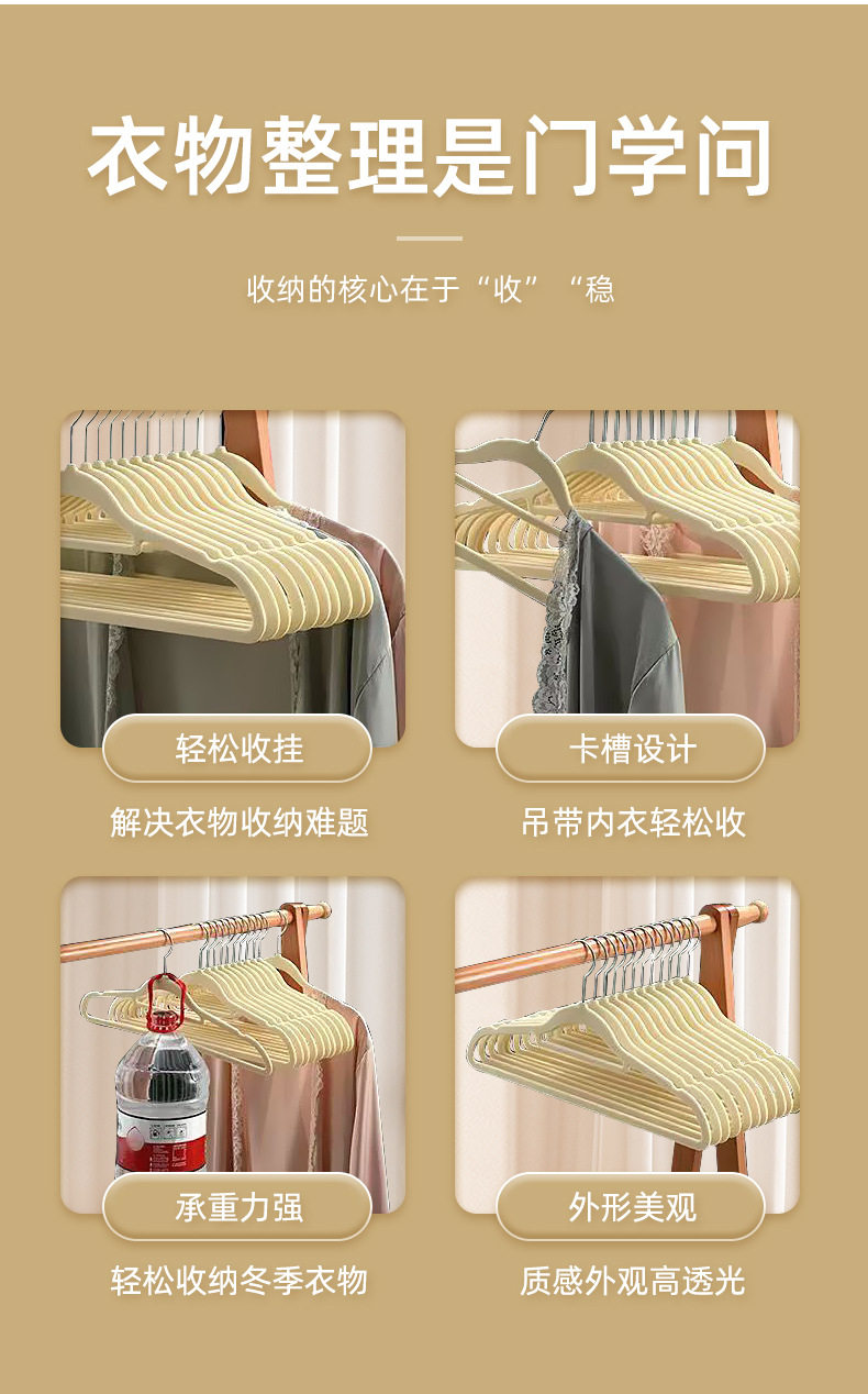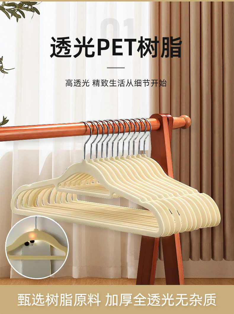 Cross-border flocking hanger non-slip plastic seamless hanger transparent clothes hanging household adult clothes support factory wholesale