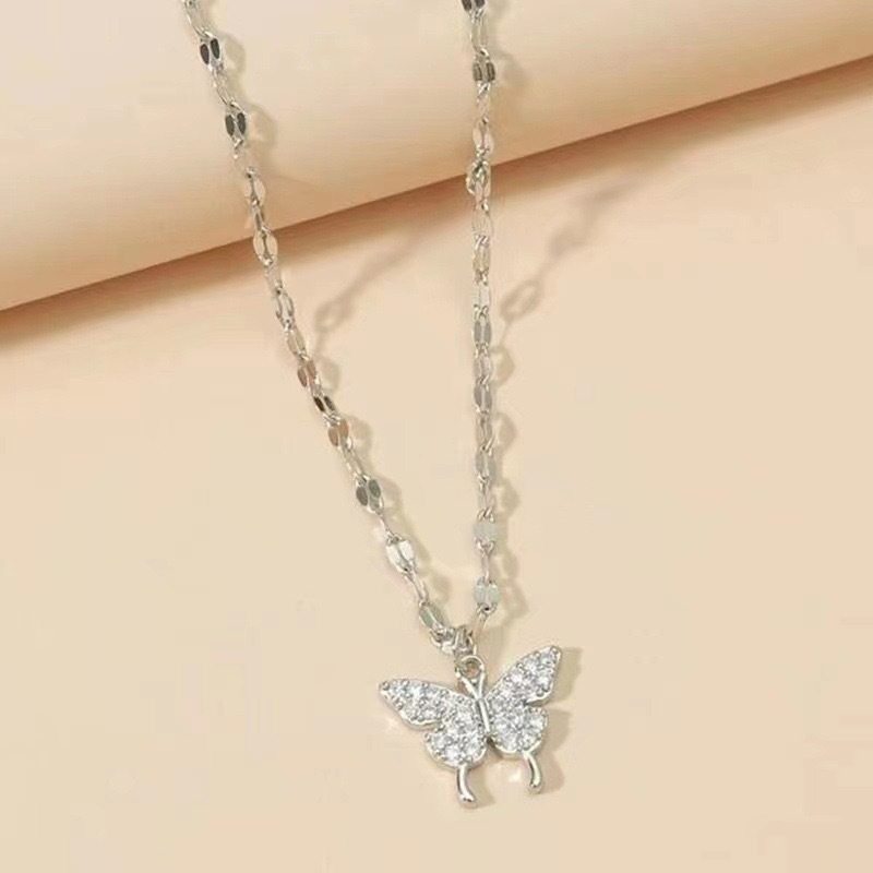 Bow water drop pendant girl heart love small fresh diamond gift niche Joker Ruyi lock necklace wholesale