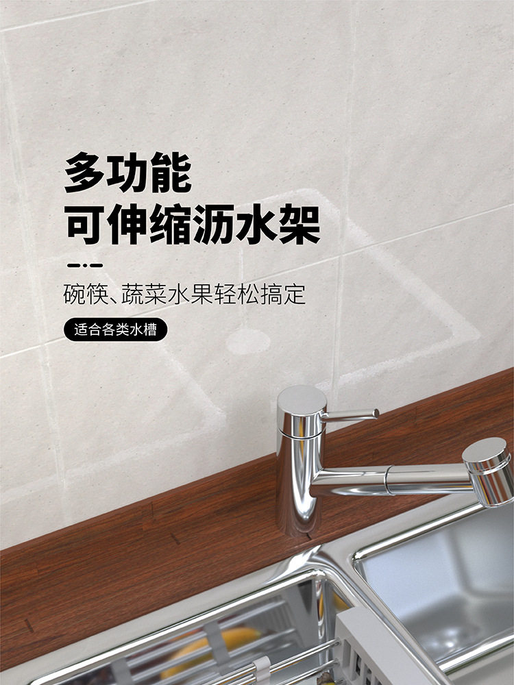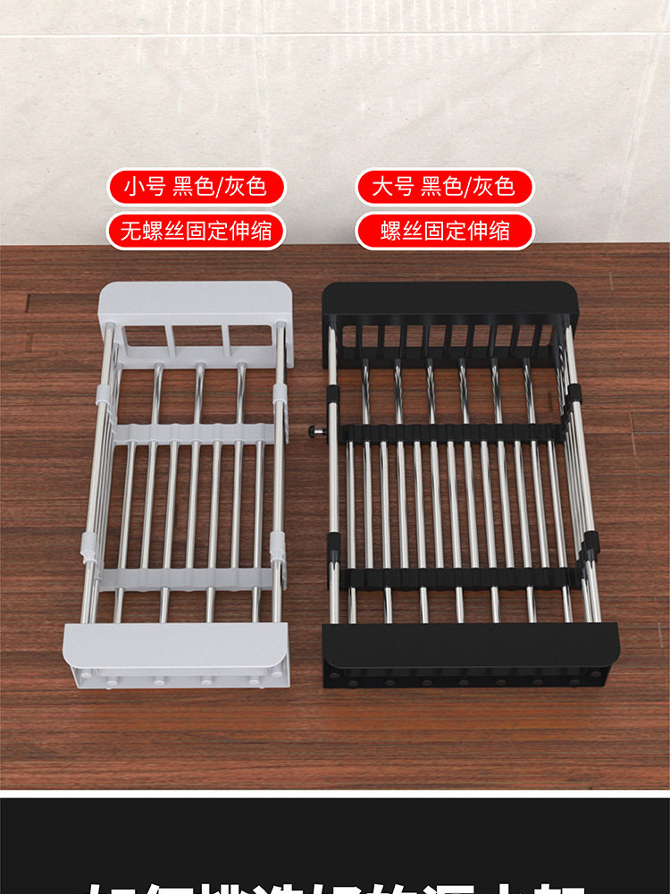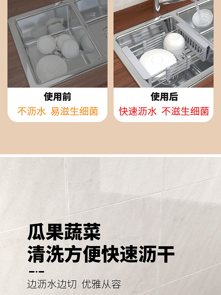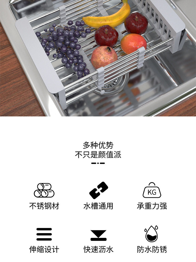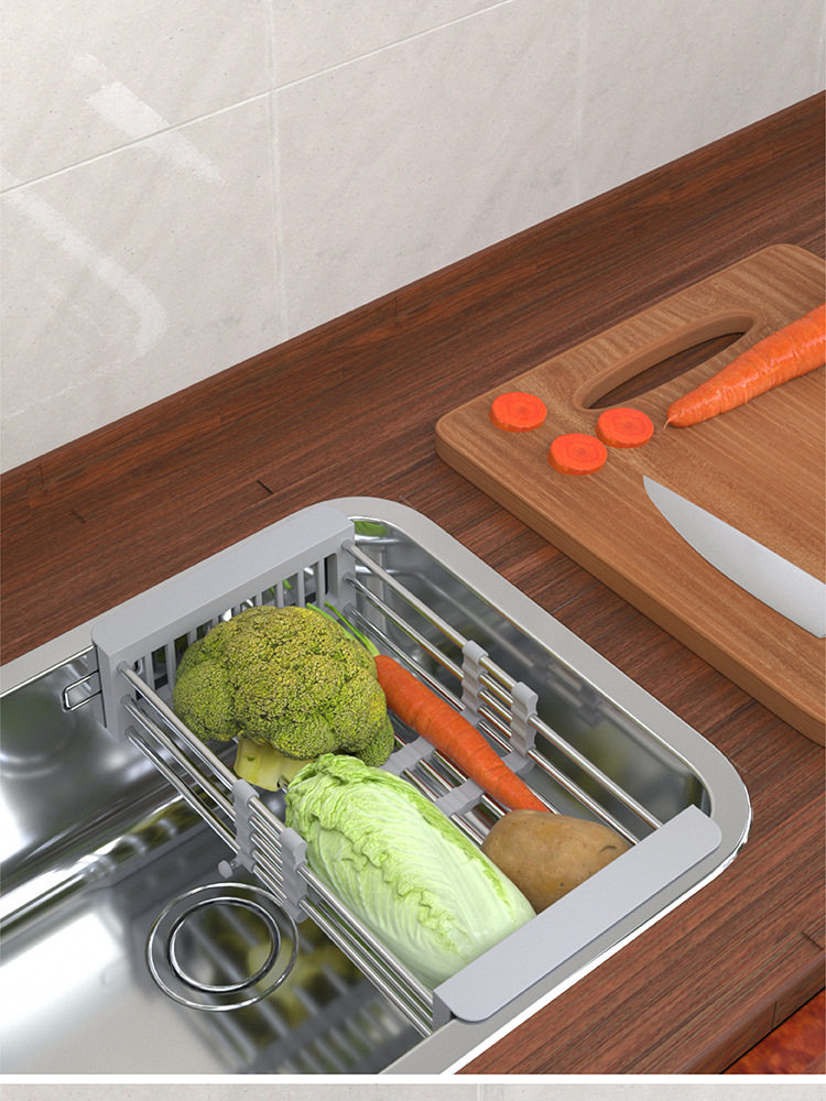 Stainless Steel Retractable Sink Drain Rack Fruit and Vegetable Bowl Chopsticks Vegetable Washing Drain Basket Household Dish Fruit Storage Rack