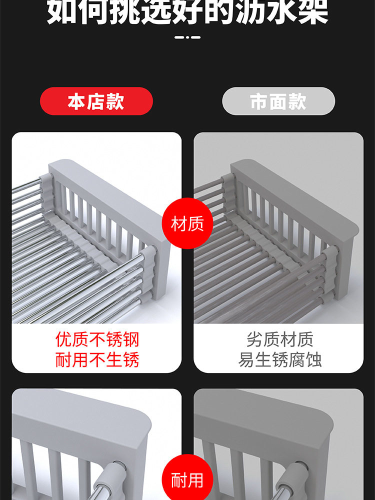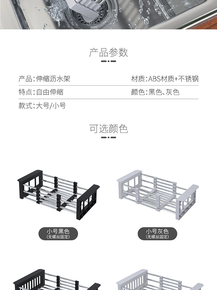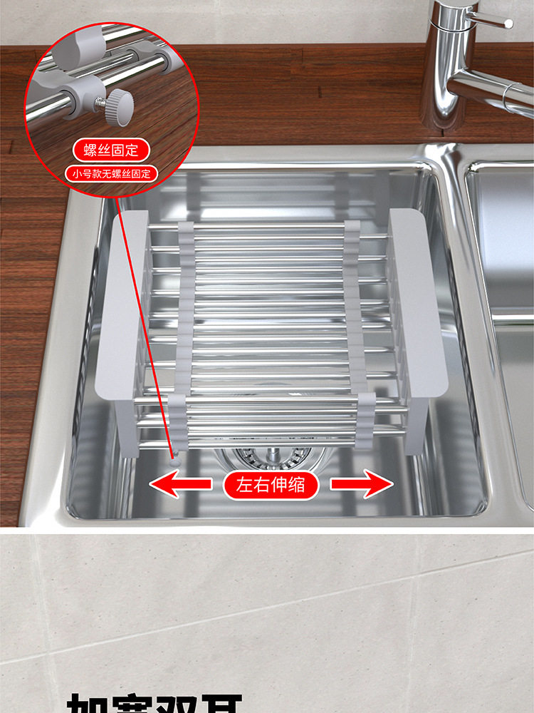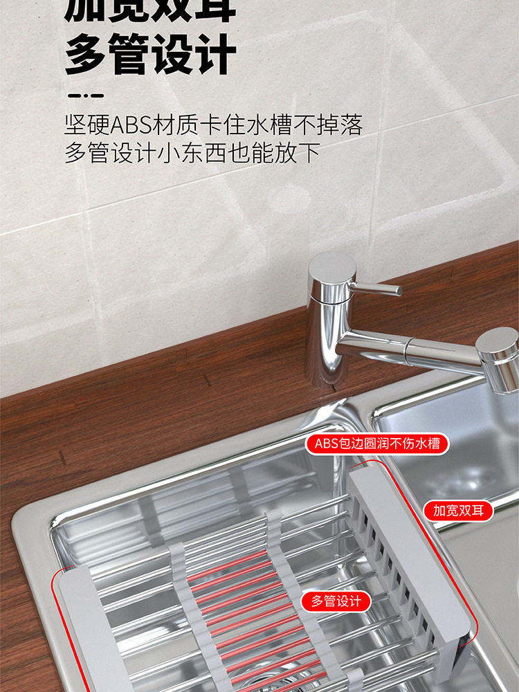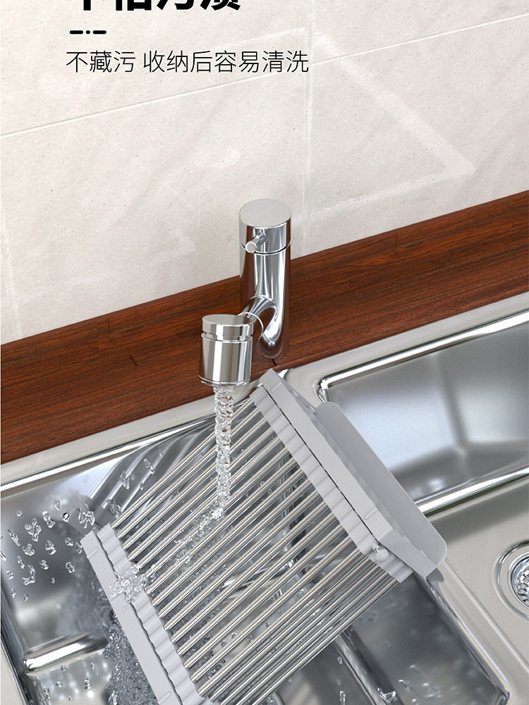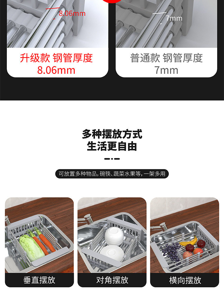 Stainless Steel Retractable Sink Drain Rack Fruit and Vegetable Bowl Chopsticks Vegetable Washing Drain Basket Household Dish Fruit Storage Rack