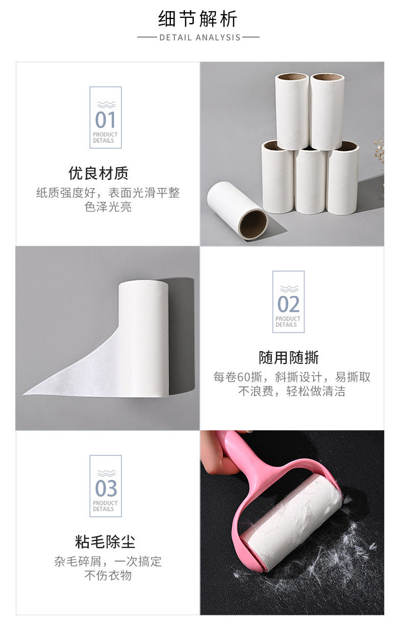 Spot sticky hair roll paper tearable sticky hair replacement paper core clothes hair removal roll paper pet hair removal artifact wholesale
