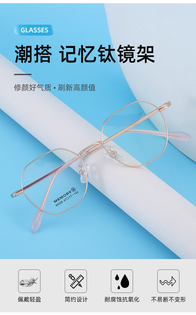 New retro glasses frame trend polygonal glasses frame memory titanium comfortable not clip face Danyang glasses wholesale