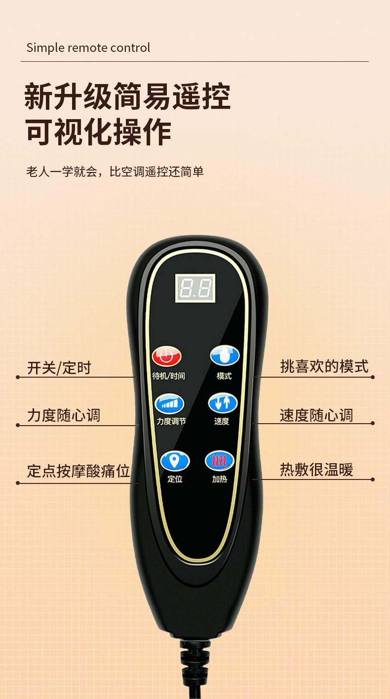 | Function | Timing,Infrared physiotherapy,Hand-held wire control,Mechanical massage |