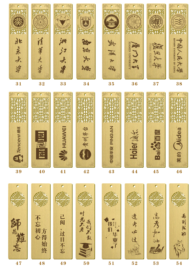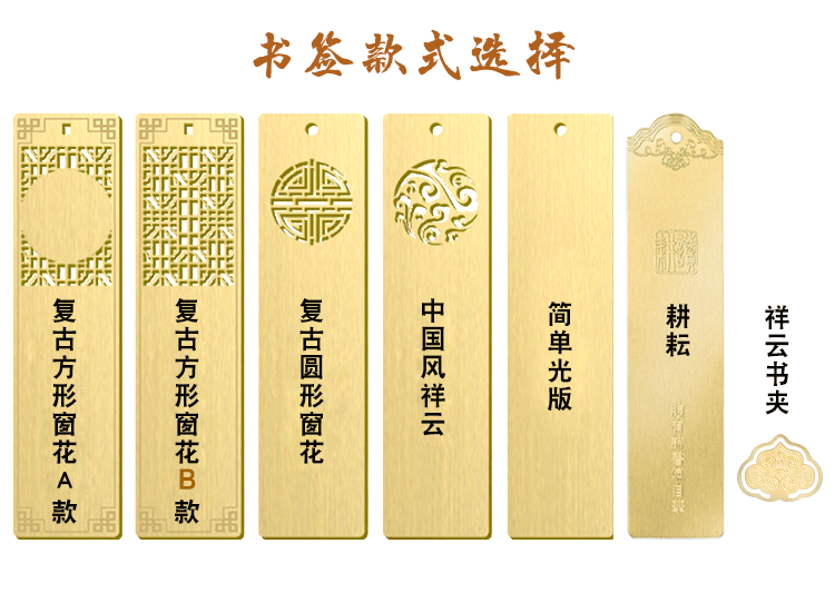 Gengdu Brass Bookmarks Customized with Figures and Samples School Graduation Souvenirs Wenchuang Hollow Chinese Style Bookmarks Customized