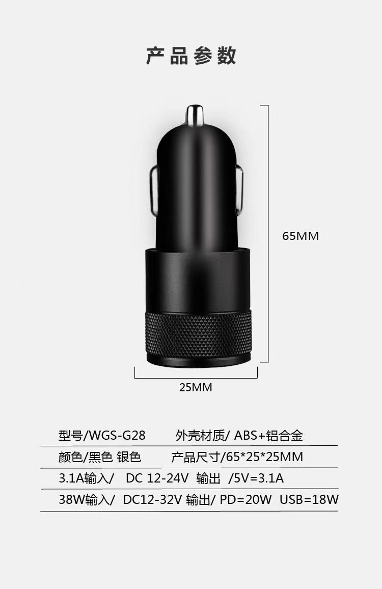 38W double fast charging small steel gun PD with packing box A + C car charger type-c