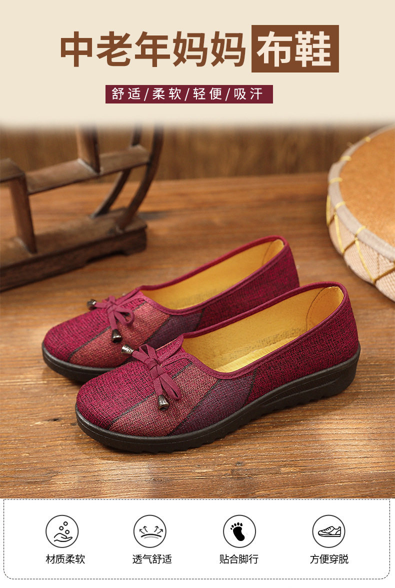Old Beijing Cloth Shoes for Women, Winter Casual Breathable Three-Color Butterfly Hanfu Cloth Shoes for Mothers, 2025 Qianyude Shoes