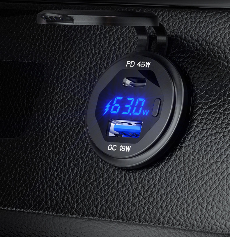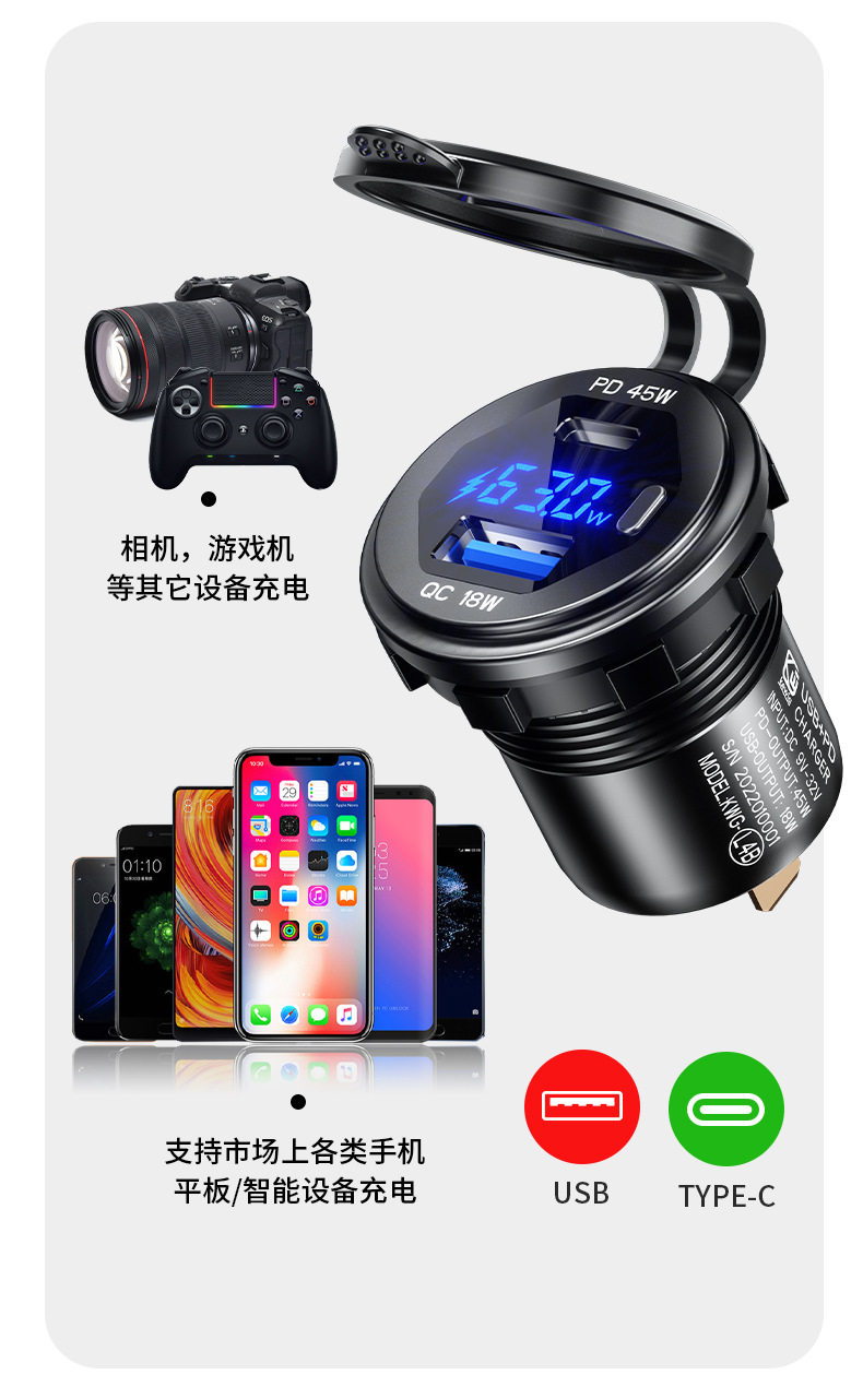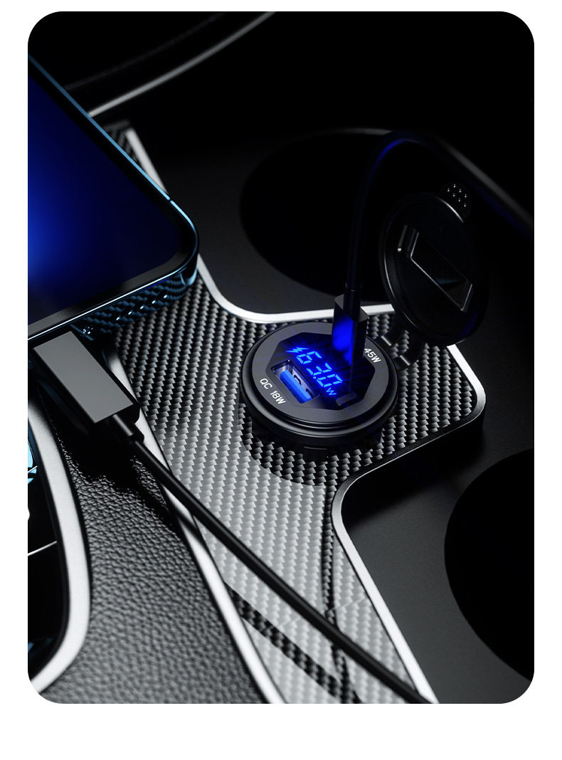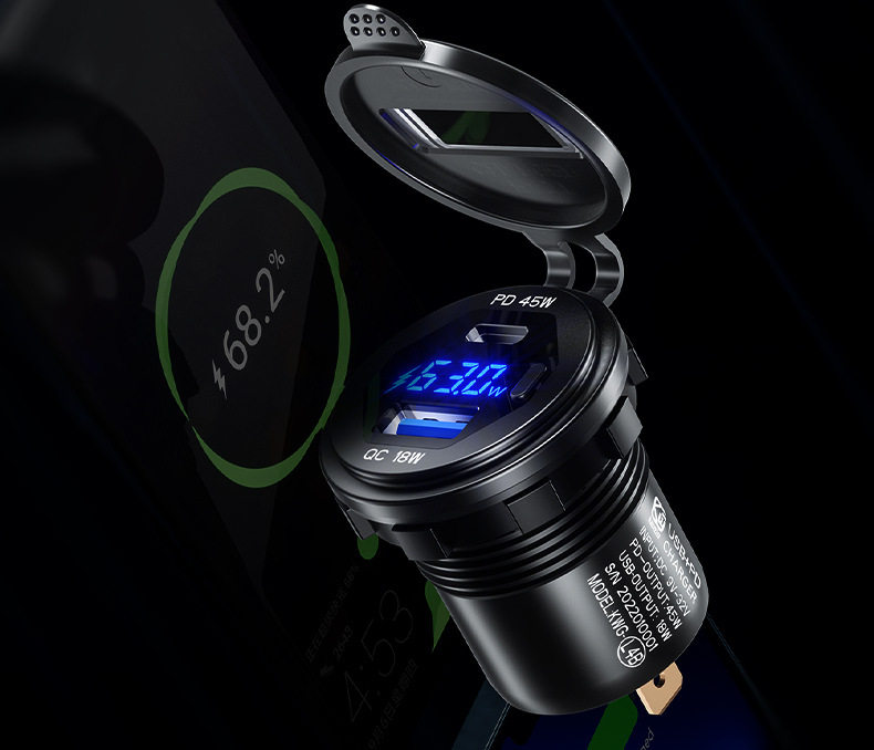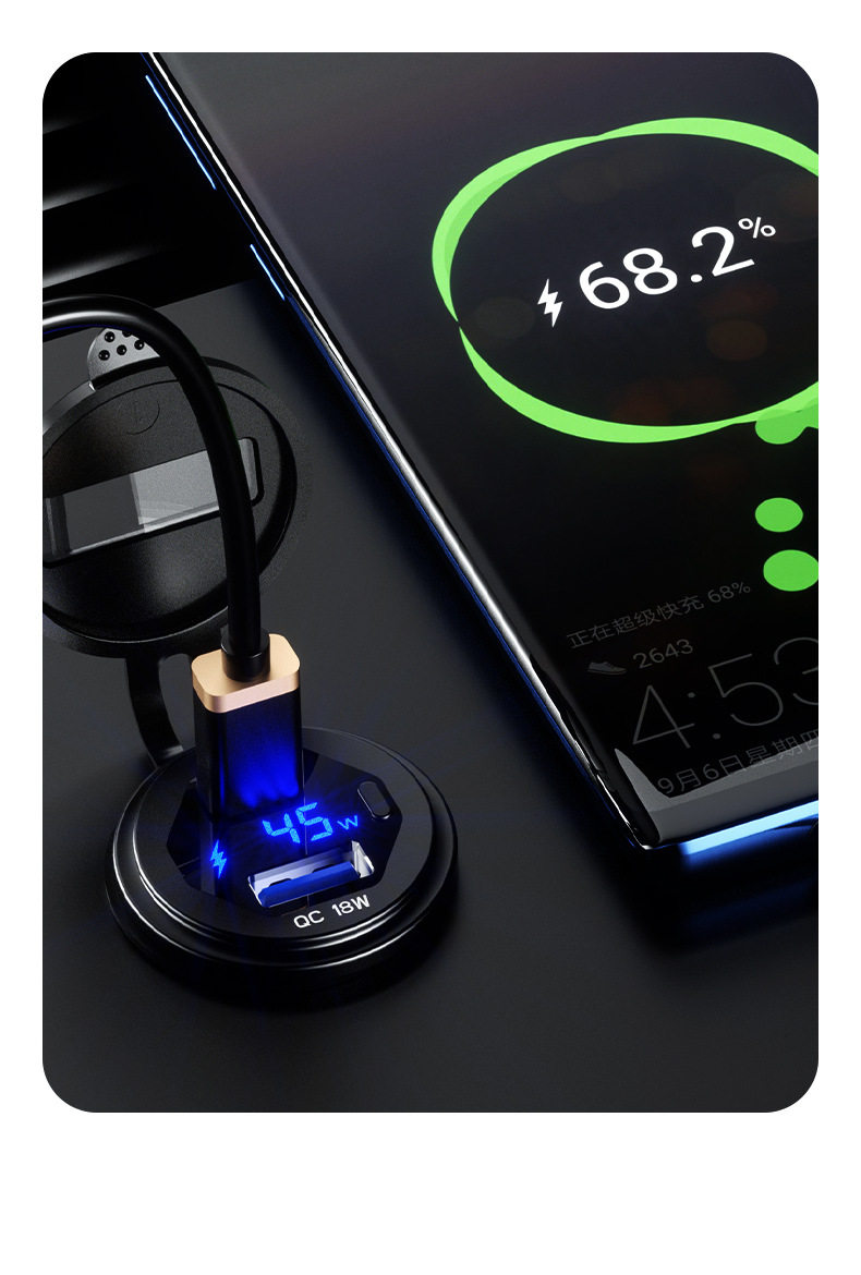 Kaiweig new modified USB car charger PD45W fast charging aluminum alloy car mobile phone charger