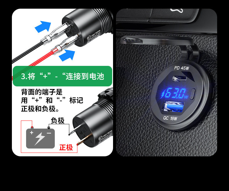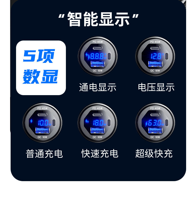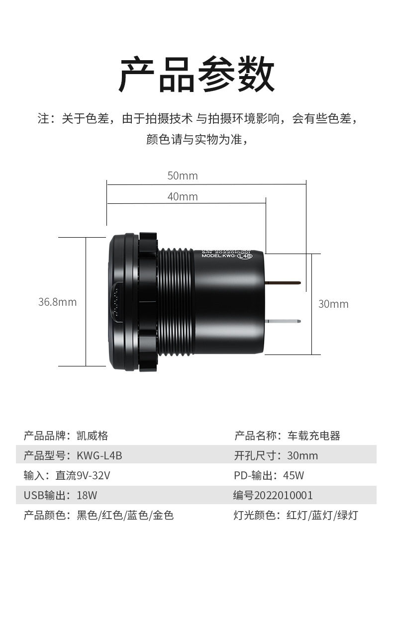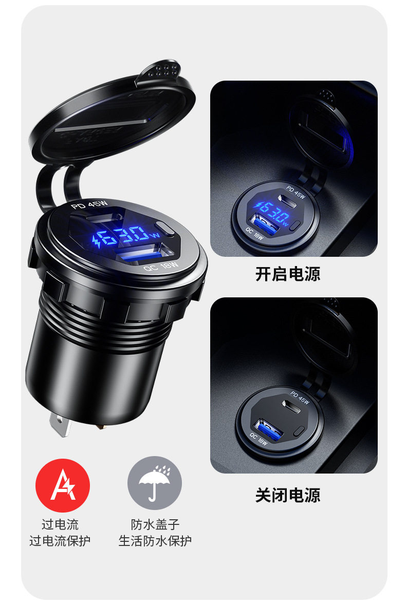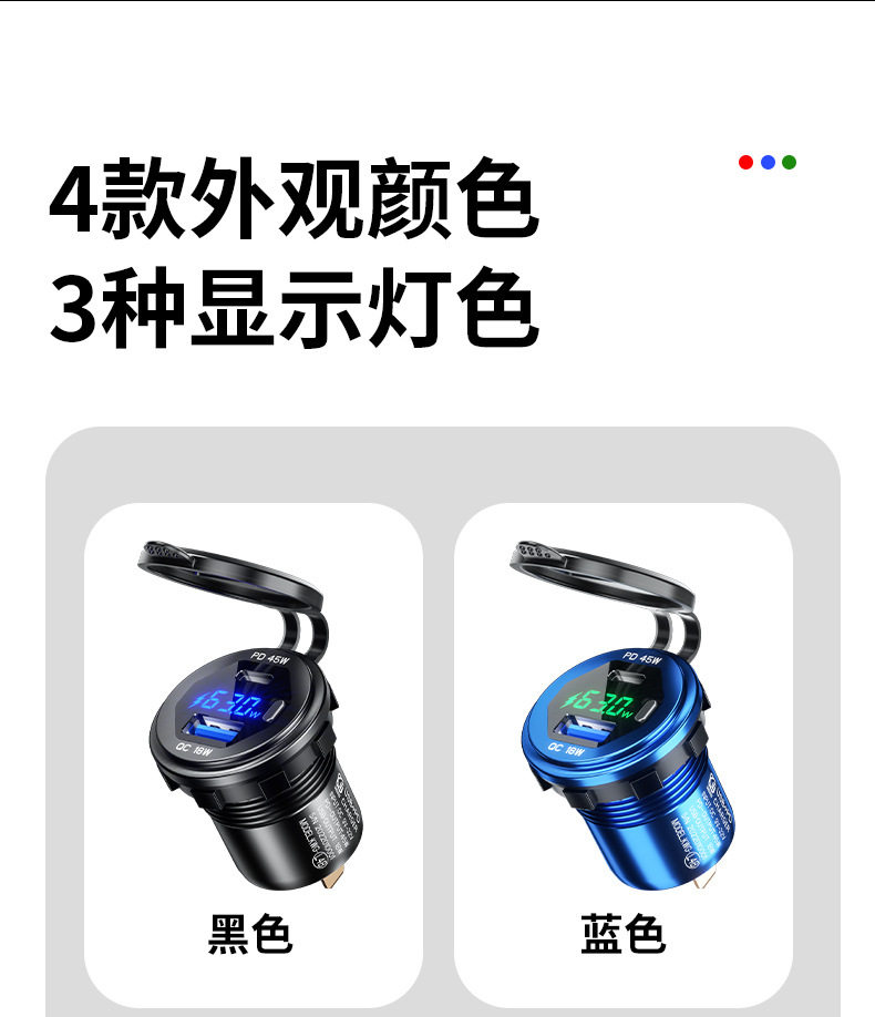 Kaiweig new modified USB car charger PD45W fast charging aluminum alloy car mobile phone charger