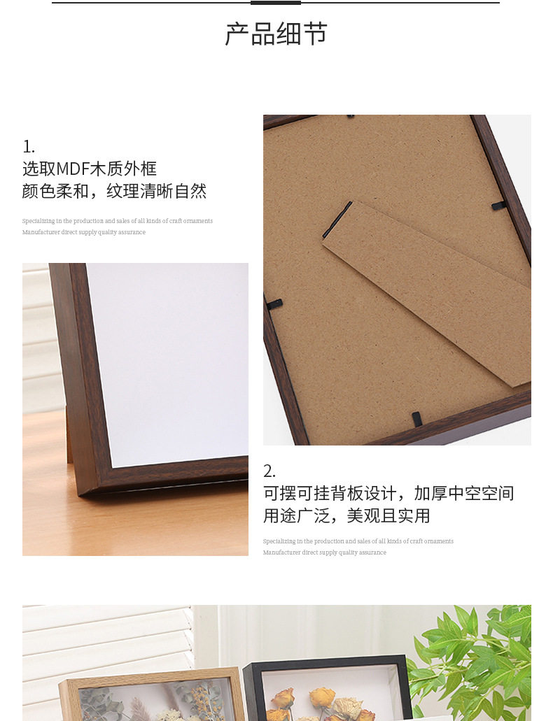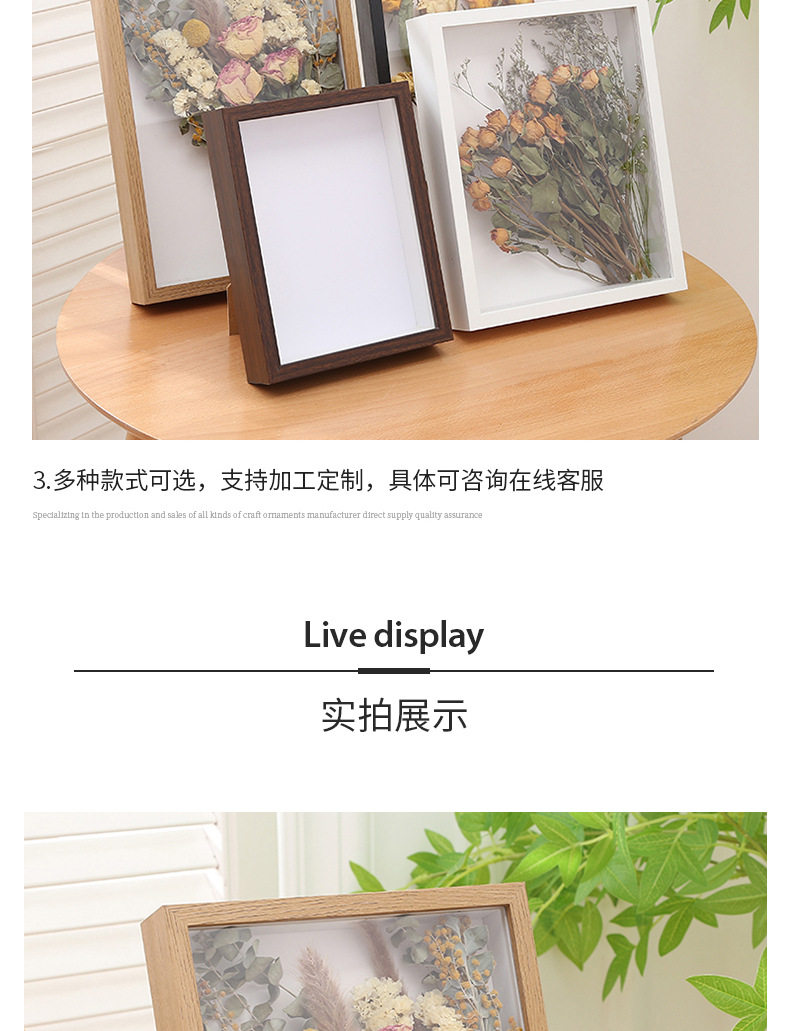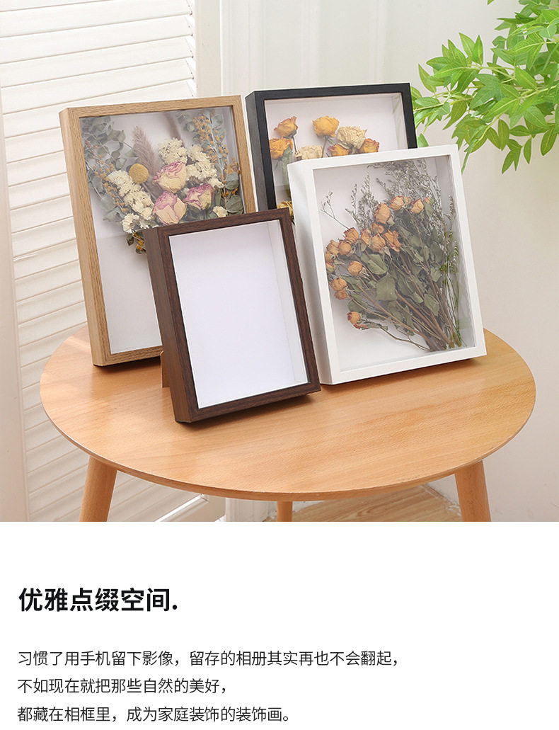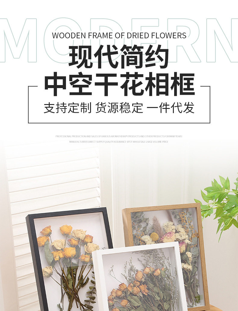Casual Wooden Dried Flower Photo Frame 3cm Stereo Hollow Dried Flower Frame Ornaments Valentine's Day Handmade Gift Frame Wholesale