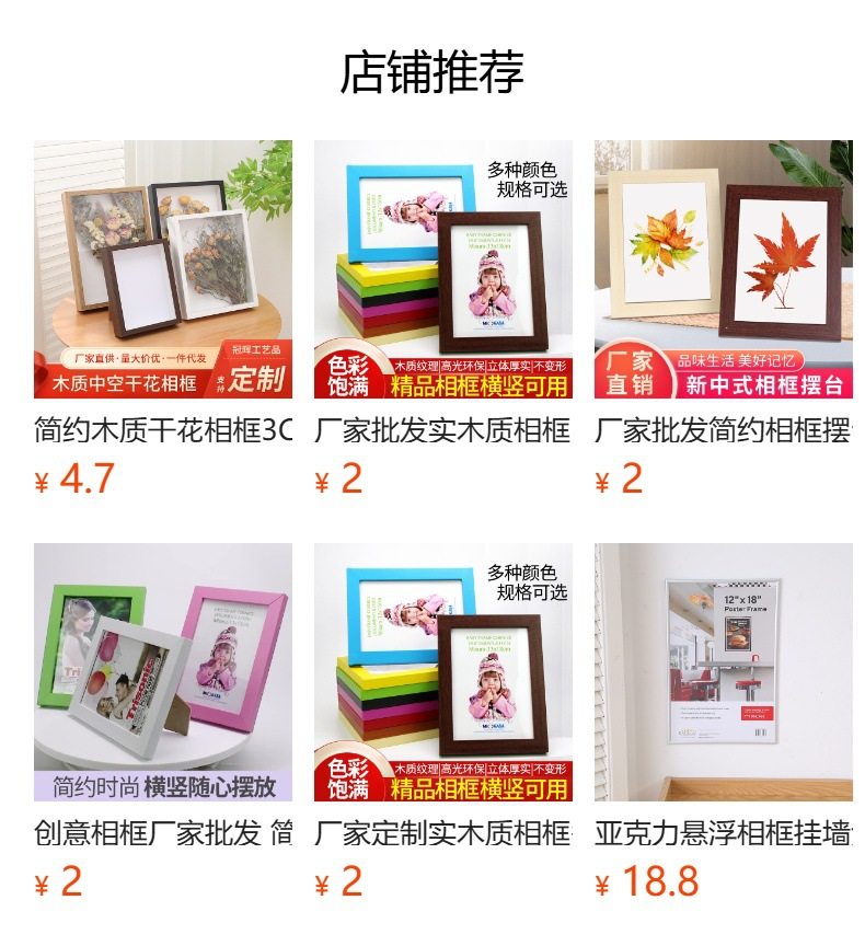 | Frame size | 6inch (can hold 10.2*15.2cm),7inch (can hold 12.7*17.8cm),8inch (can hold 15.2*20.3cm),10inch (can hold 20.3*25.4cm),A4 (can hold 21*29.7cm),Square 8inch (20.3x20.3cm),Square 10inch (25x25cm),16inch (30*40cm) |