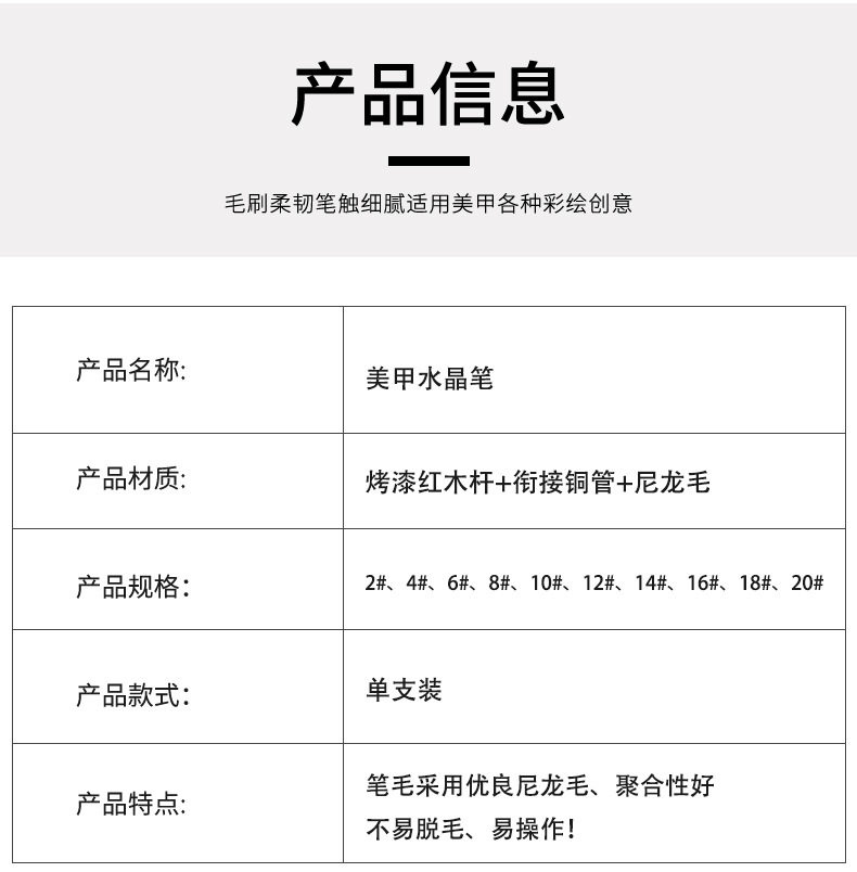 | Color | No. 2 crystal pen (round head series),No. 4 crystal pen (round head series),No. 6 crystal pen (round head series),No. 8 crystal pen (round head series),10 crystal pen (round head series),No. 12 crystal pen (round head series),No. 14 crystal pen (round head series),No. 16 Crystal pen (round head series),18 crystal pen (round head series),20 crystal pen (round head series),2 crystal pen (flat head series),No. 4 crystal pen (flat head series),No. 6 crystal pen (flat head series),No. 8 crystal pen (flat head series),10 crystal pen (flat head series),No. 12 crystal pen (flat head series),No. 14 crystal pen (flat head series),No. 16 Crystal pen (flat head series),18 crystal pen (flat head series),20 crystal pen (flat head series) |