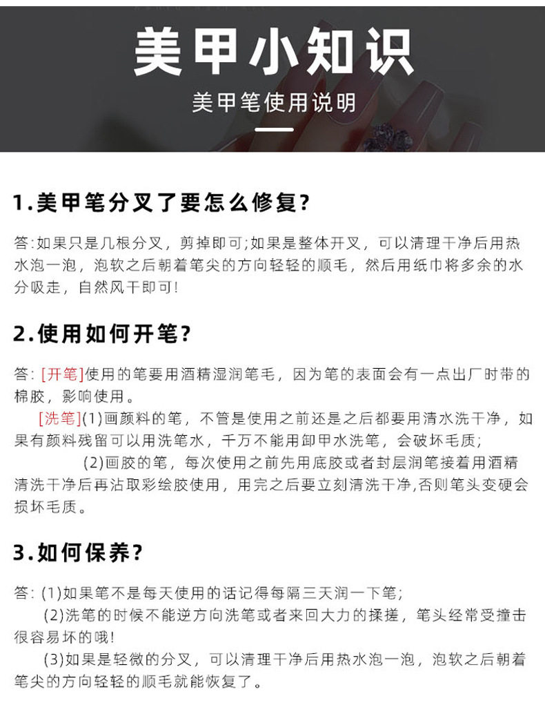 Source Factory Nail Art Crystal Pen Mahogany Rod Kolinsky Nail Art Carving Pen Painted Pen Nail Brush Set
