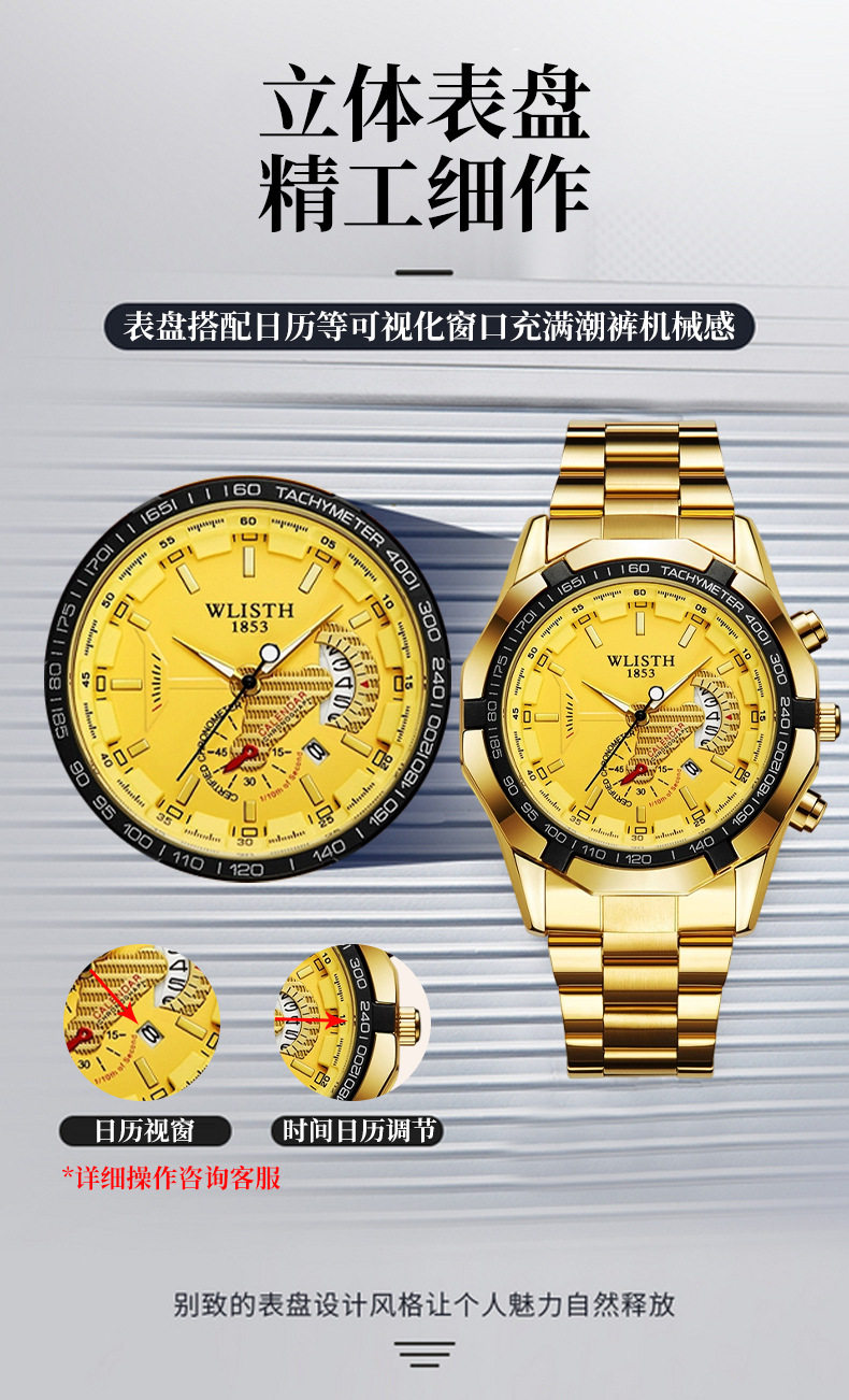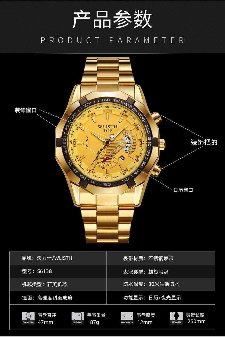 Wolixi Watch Large Dial Waterproof Mechanical Watch Cross-Border Quartz Watch Men's Watch Foreign Trade Simple Watch Wholesale