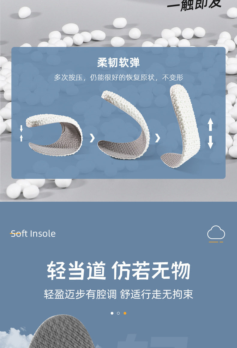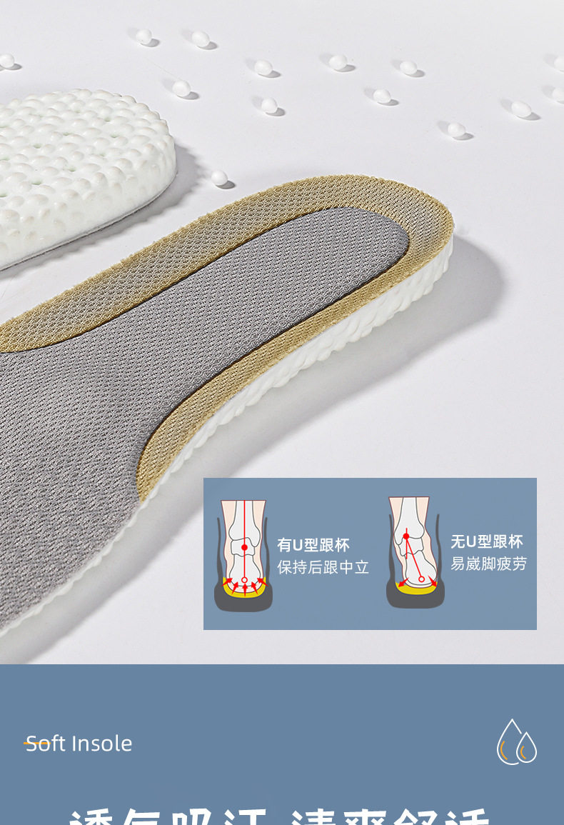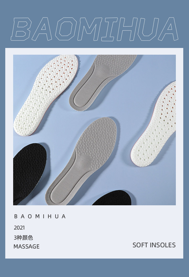 Feeling of stepping on excrement insoles sports insoles stand for a long time not tired deodorant sweat-absorbent high elastic insoles men's antibacterial sweat-absorbent insoles