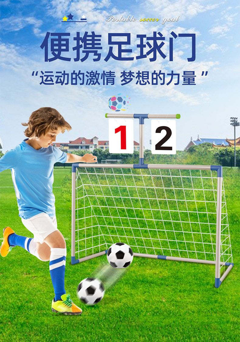 Cross-border Amazon Kidsren's Movable Football Frame Goal Frame Toy Double Door Football Goal with Ball Sports Toy