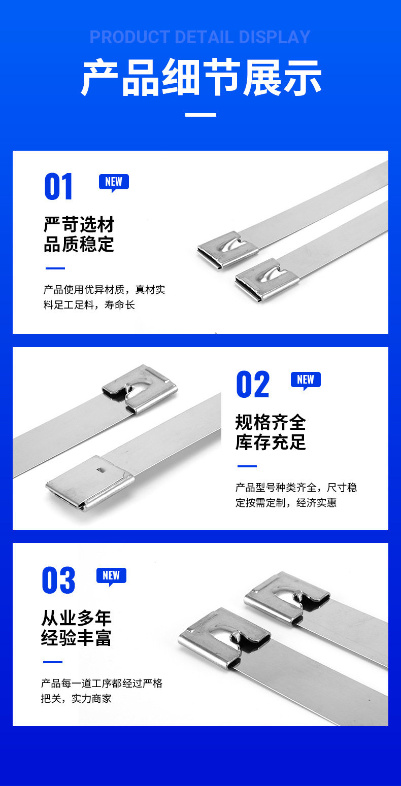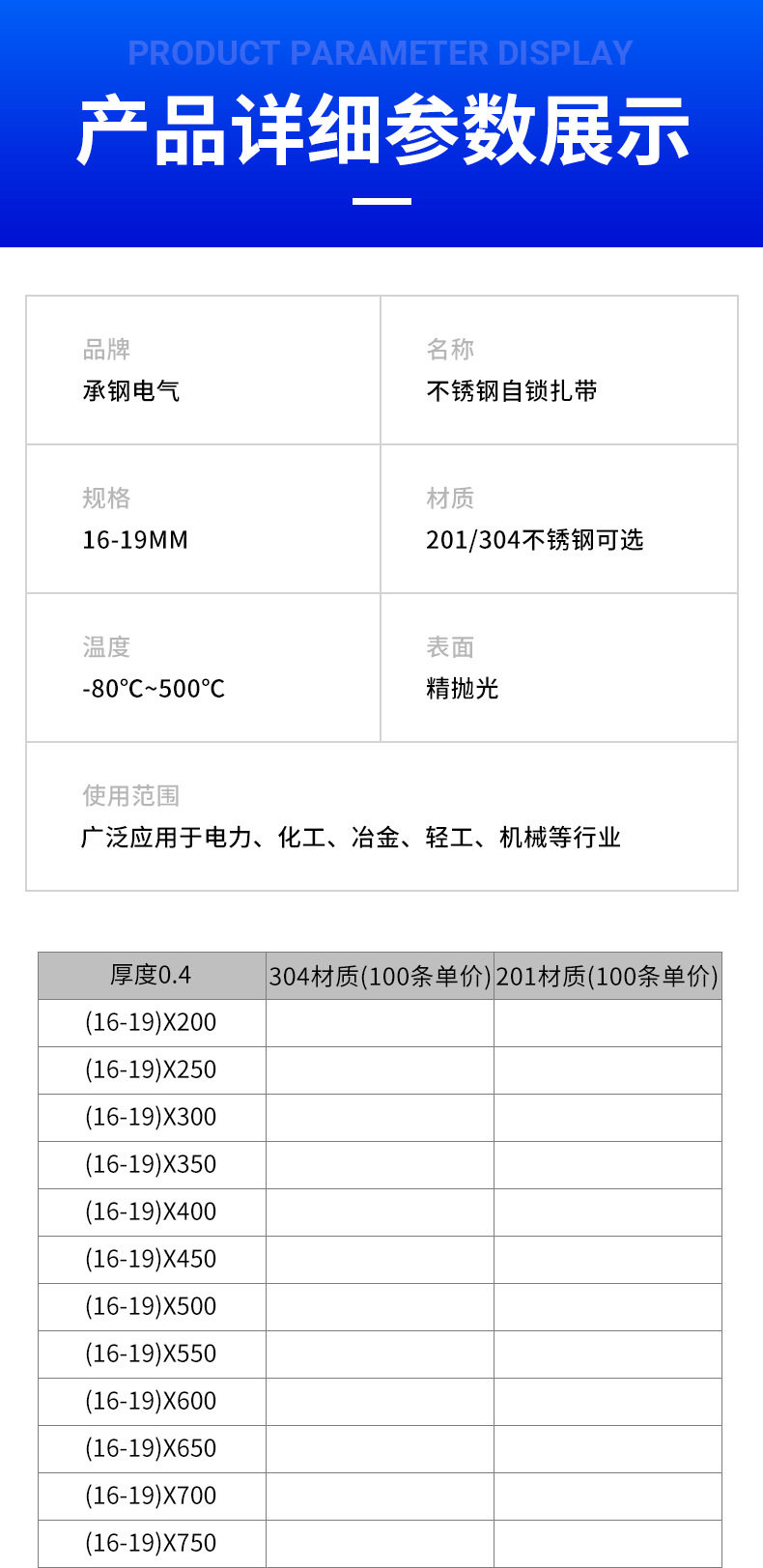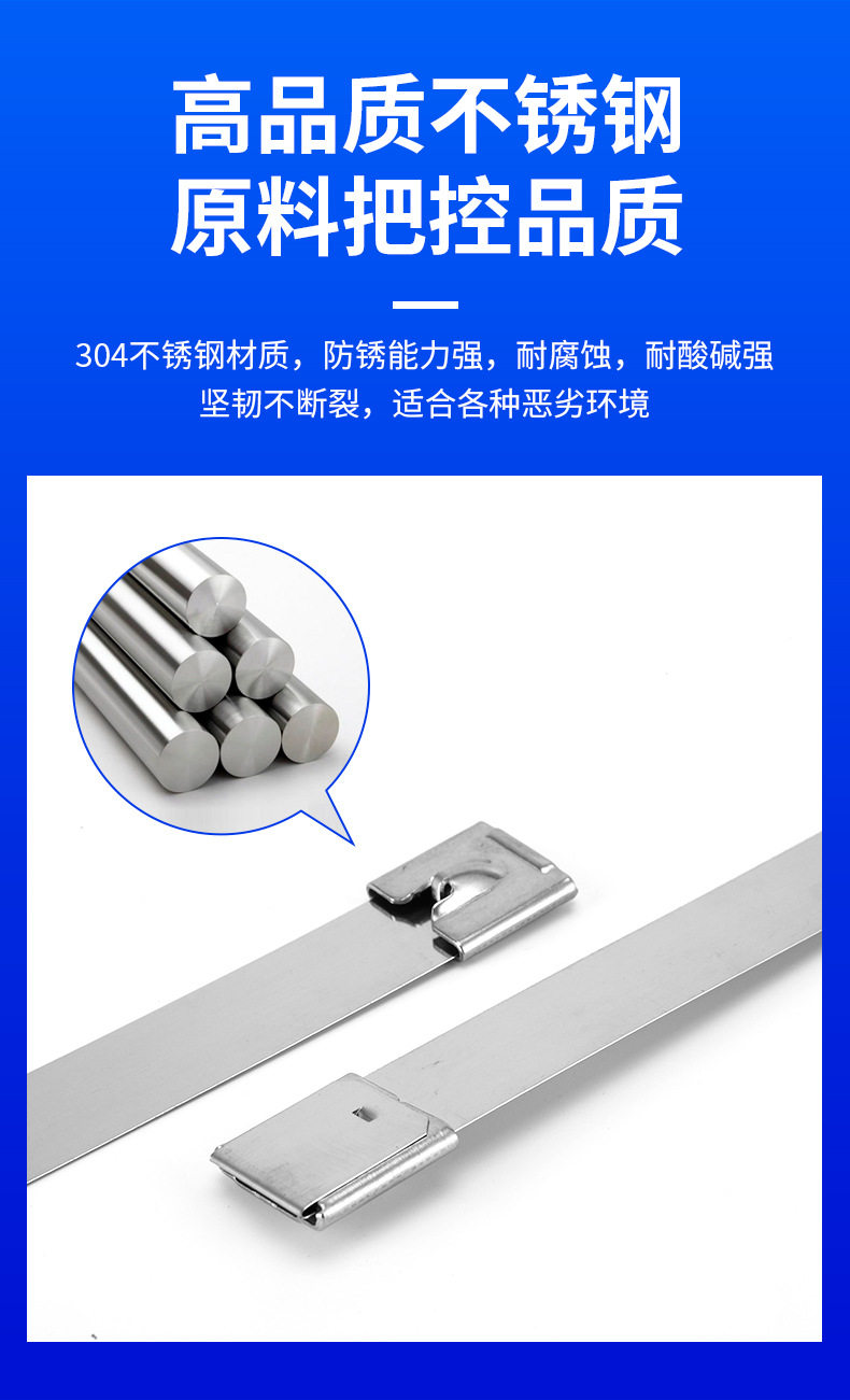304 self-locking stainless steel tie 16MM wide metal white steel tie wire marine traffic tag outdoor tie