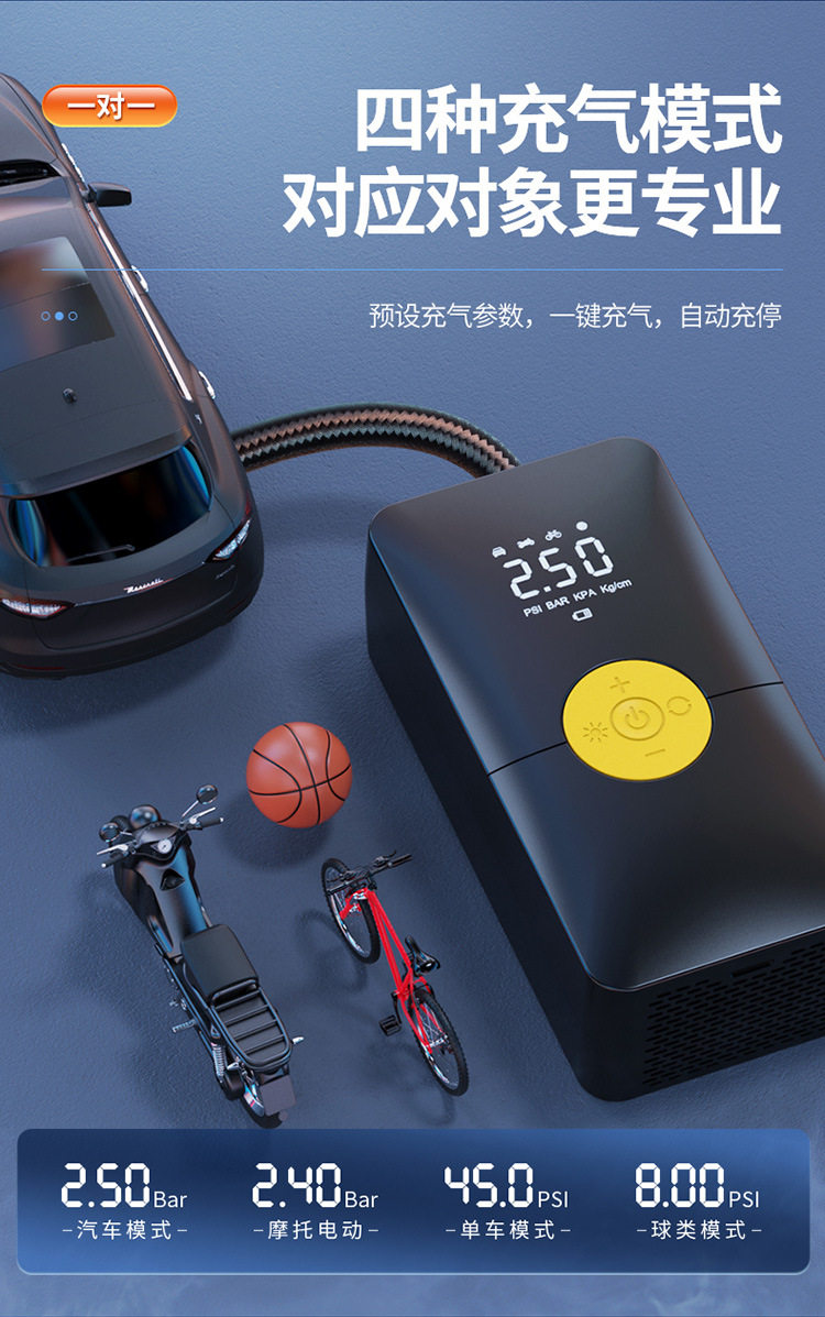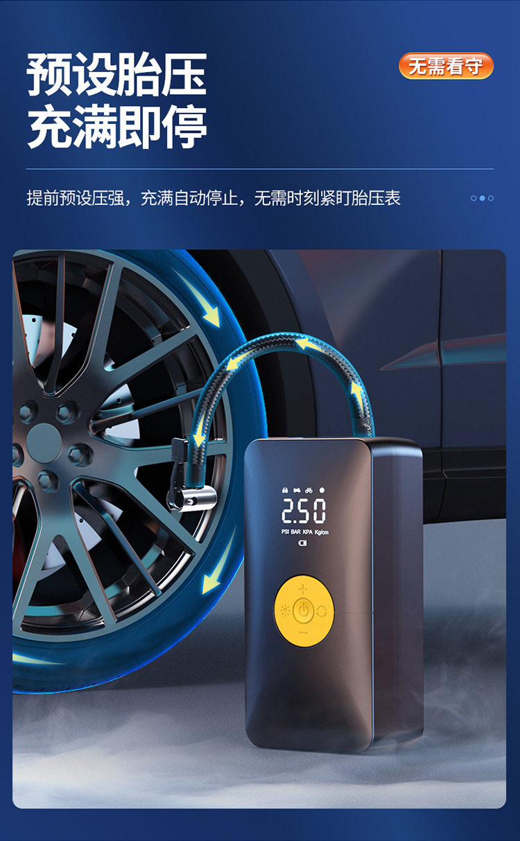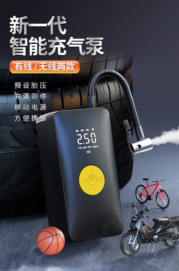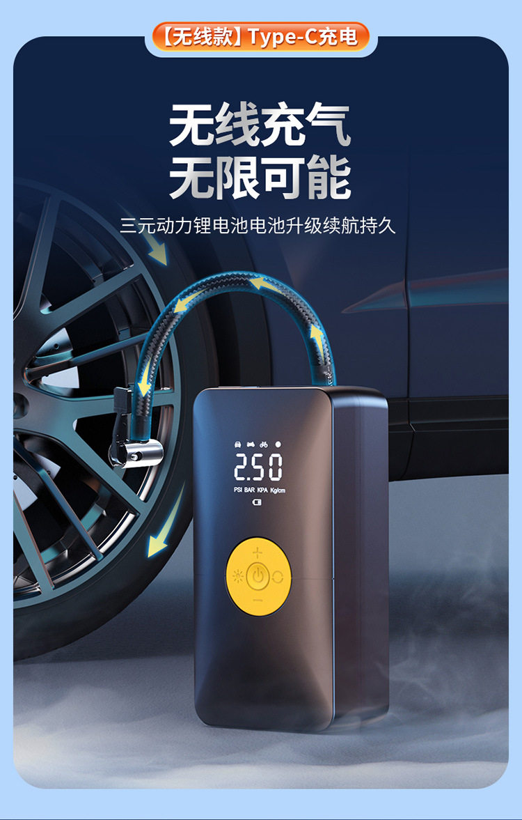 Car wireless air pump car portable electric inflator car dual-purpose digital display car tire inflator