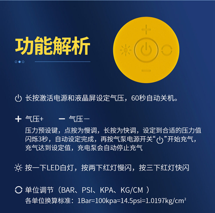 | Additional features | Lighting,Tire pressure gauge,USB charging |